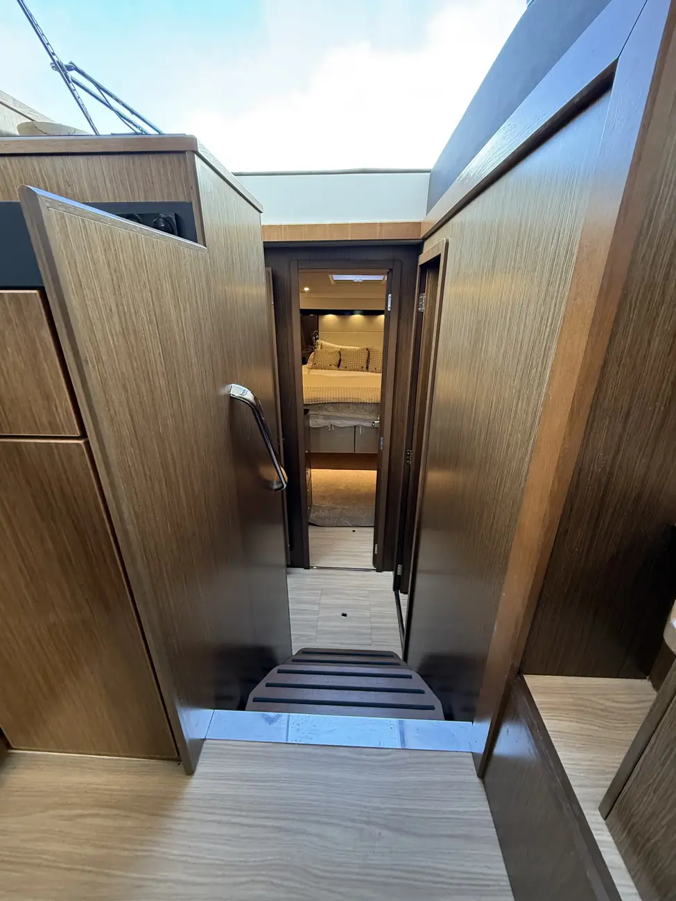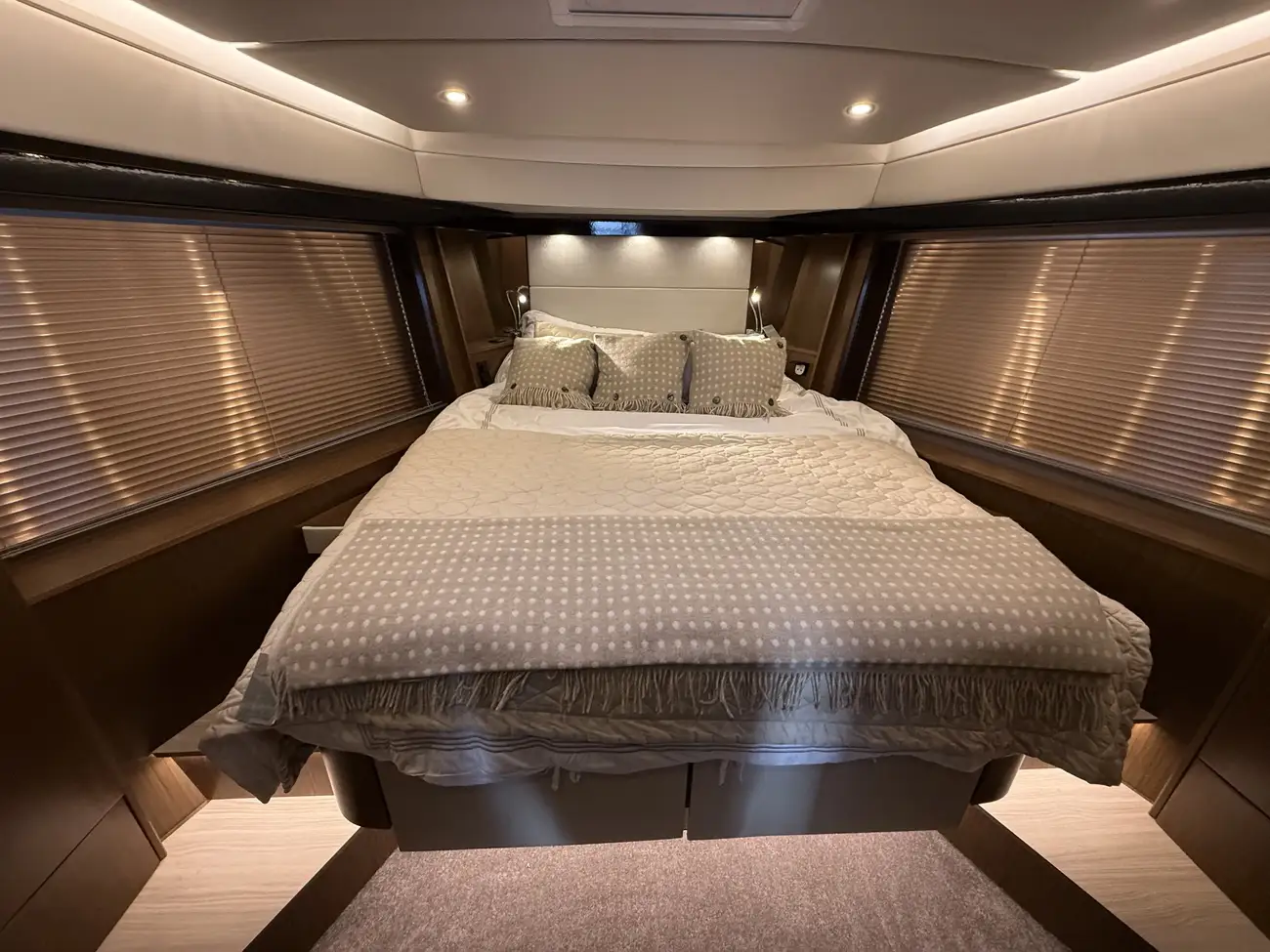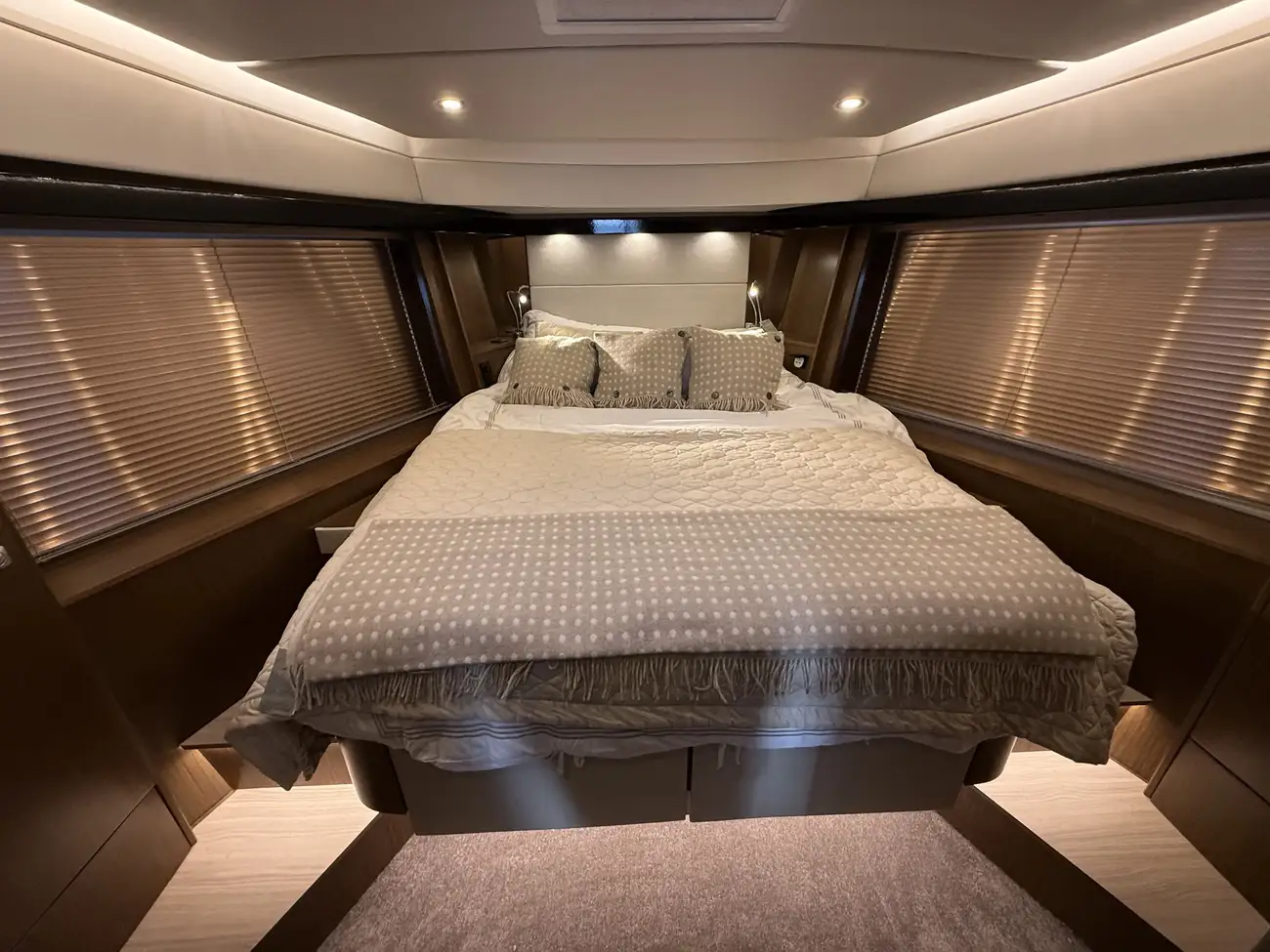 The Virtess 420 offers luxurious accommodation for up to six guests across three spacious double berths. The full-beam master cabin features a comfortable double berth and benefits from its own private en-suite bathroom, providing excellent privacy and comfort. Two additional double cabins offer versatile guest accommodation, supported by a second heads compartment with a separate shower, ensuring convenience for family and guests alike.