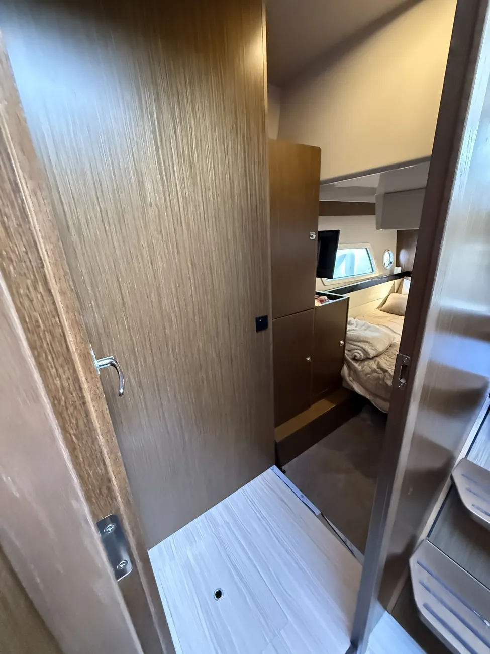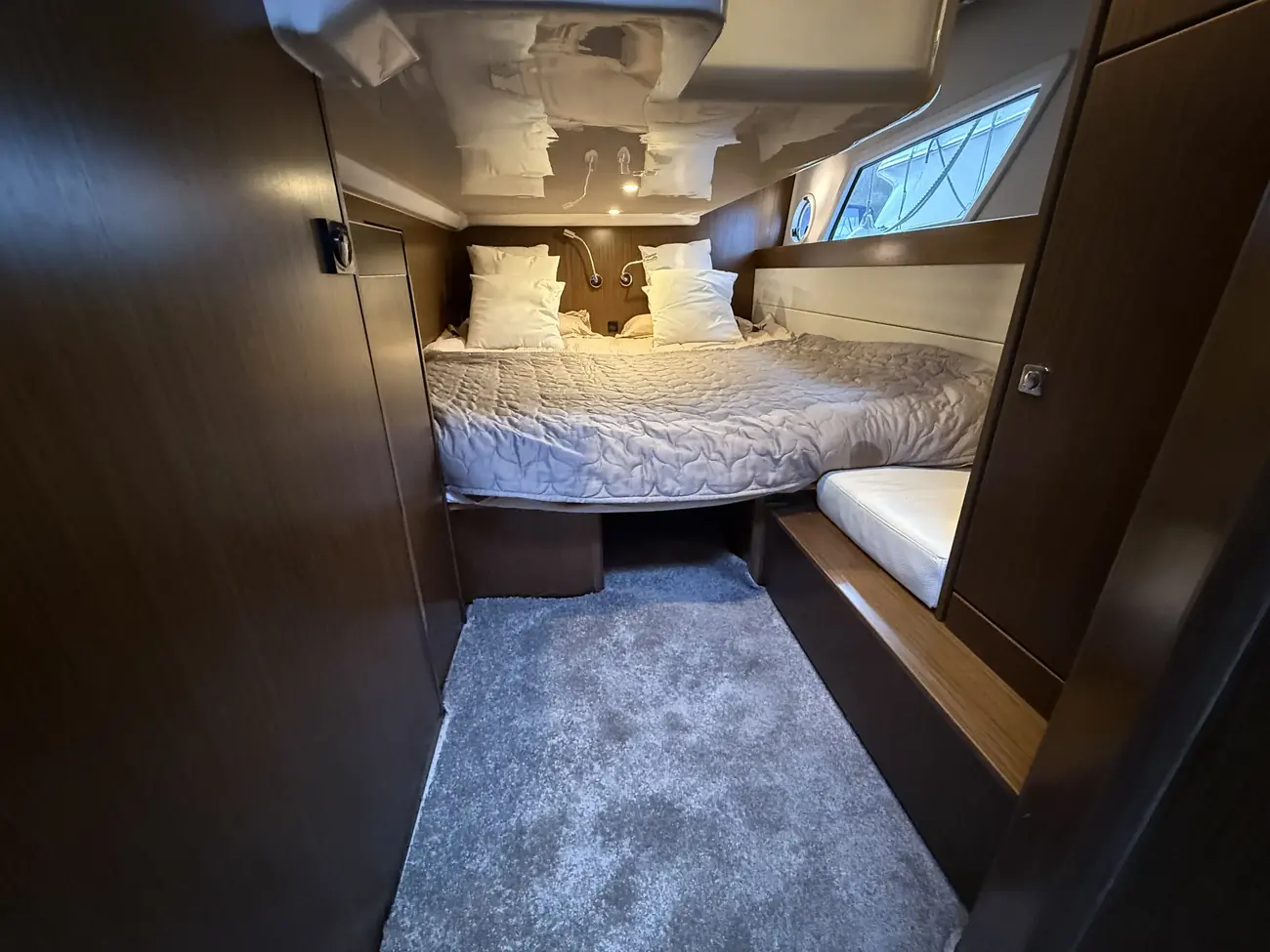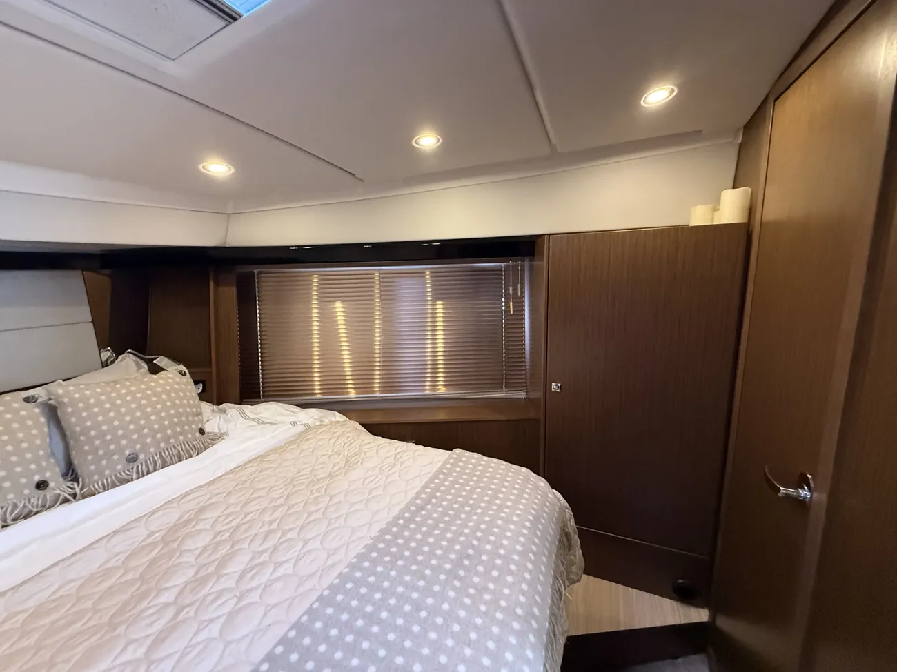 The Virtess 420 offers luxurious accommodation for up to six guests across three spacious double berths. The full-beam master cabin features a comfortable double berth and benefits from its own private en-suite bathroom, providing excellent privacy and comfort. Two additional double cabins offer versatile guest accommodation, supported by a second heads compartment with a separate shower, ensuring convenience for family and guests alike.