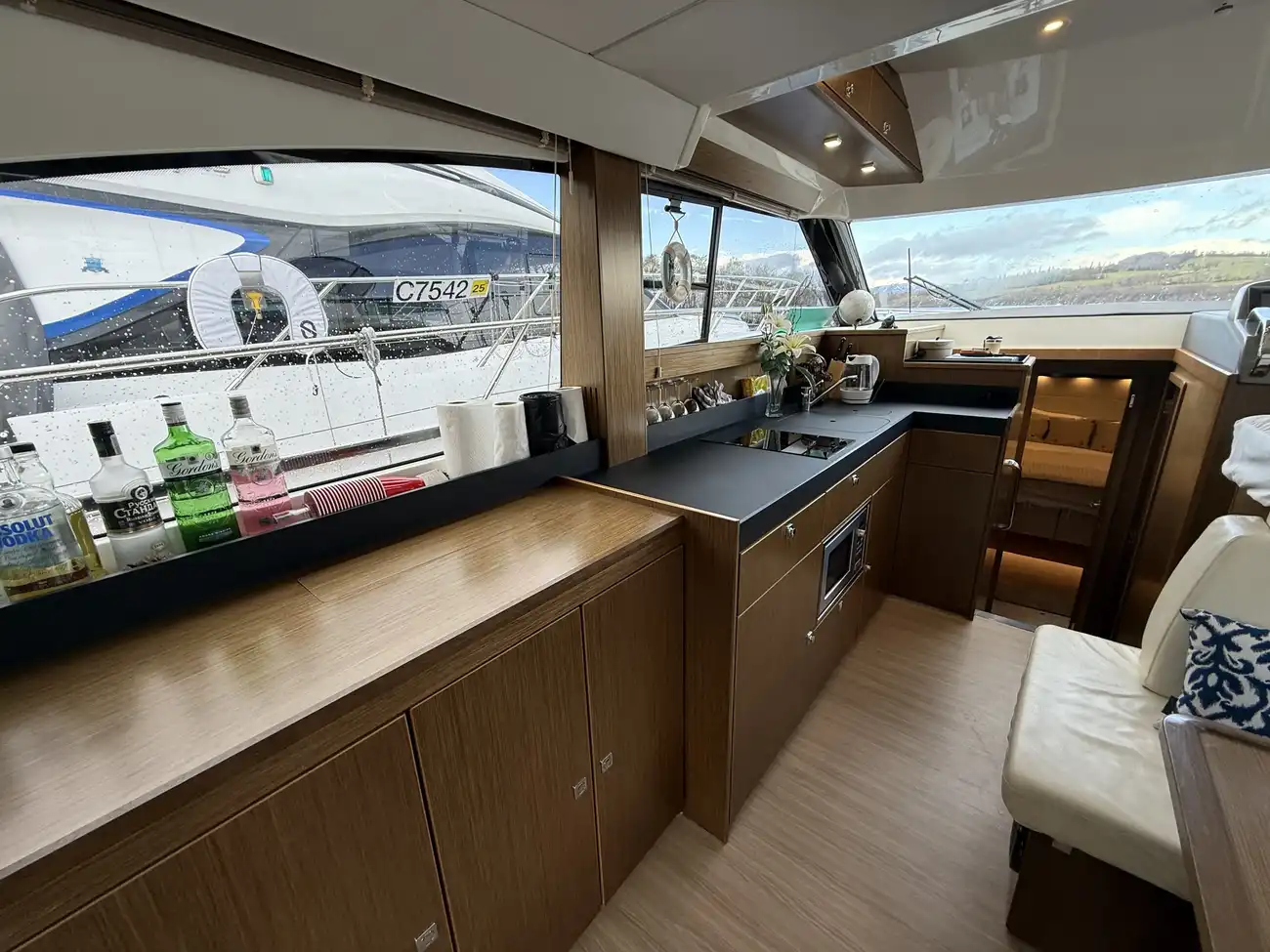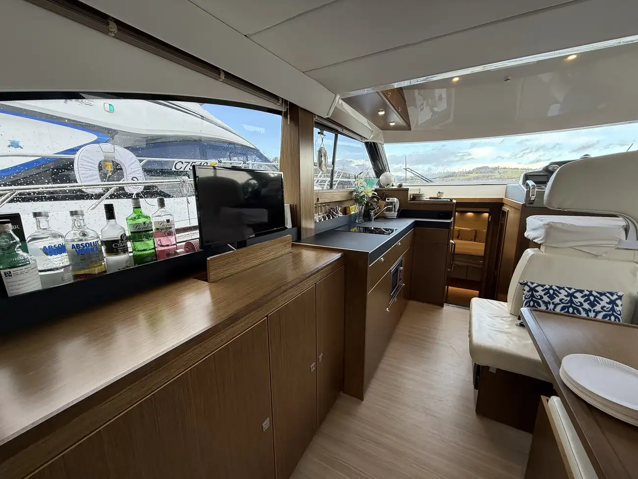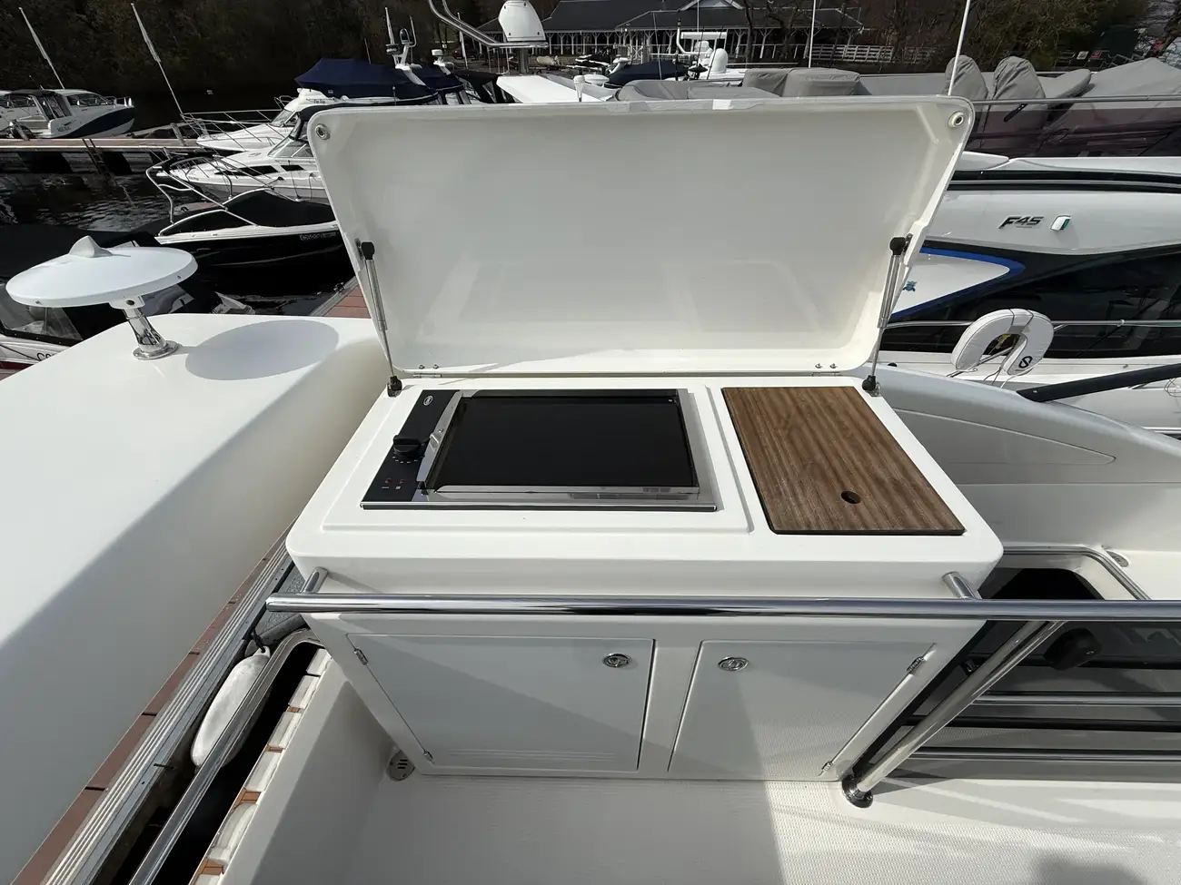The interior is beautifully finished with Bavaria’s renowned craftsmanship, creating a bright and welcoming living space with a well-appointed saloon and fully equipped galley, perfect for relaxing or entertaining on board.