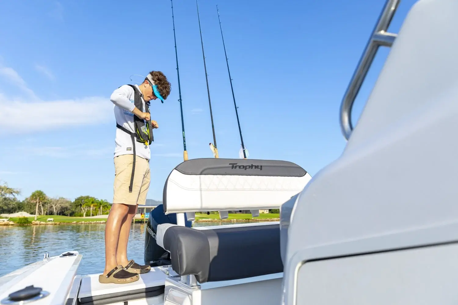 The T20 offers the perfect balance of fishability and comfort. Highlights include a deep V-hull a broad bow for casting or lounging livewells aft bench seat and a dry-riding interior that makes the ride to your favorite fishing spot or waterfront restaurant a lot more comfortable. Families enjoy its user-friendly design and conveniences like a self-bailing cockpit for easy cleanup and an enclosed head compartment at the center console. Additional options like a ski tow pylon adds extra versatility for adventure-seekers.