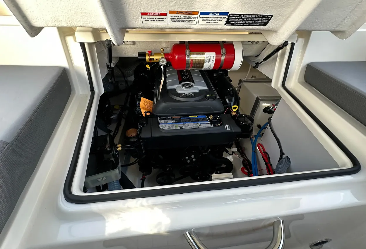 Powered by a huge 300HP 6.2L MerCruiser petrol engine, propelling her through the water at speed.