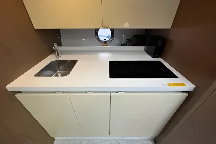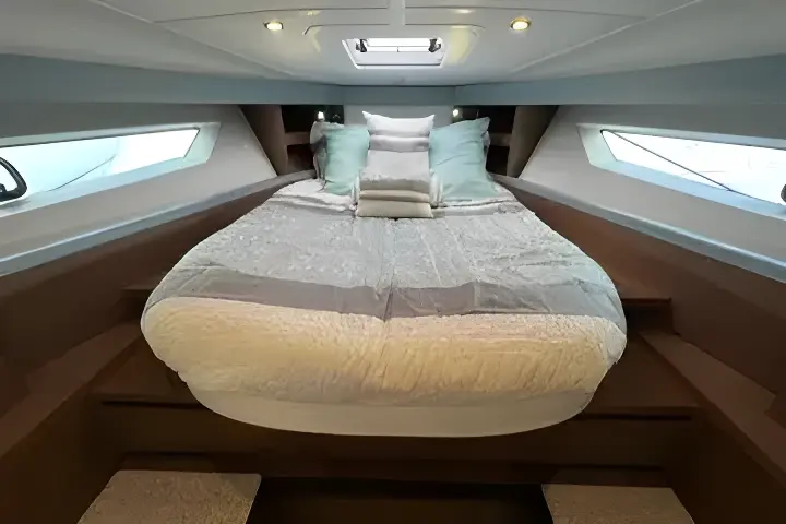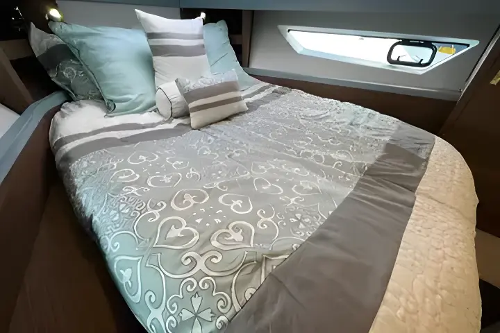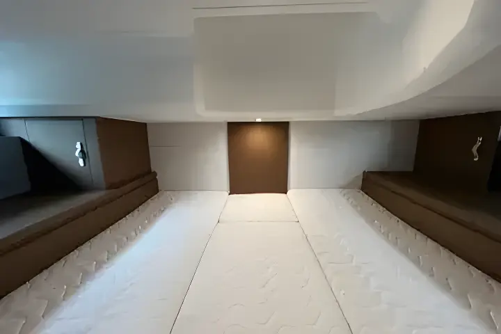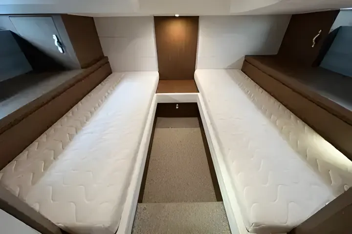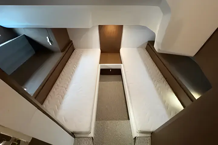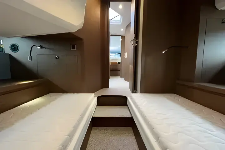 - 2 Single berths (0,70 x 1,95 m / 2’4’’ x 6’5’’) or 1 Double berth (1,40 x 1,95 m / 4’7’’ x 6’5’’)