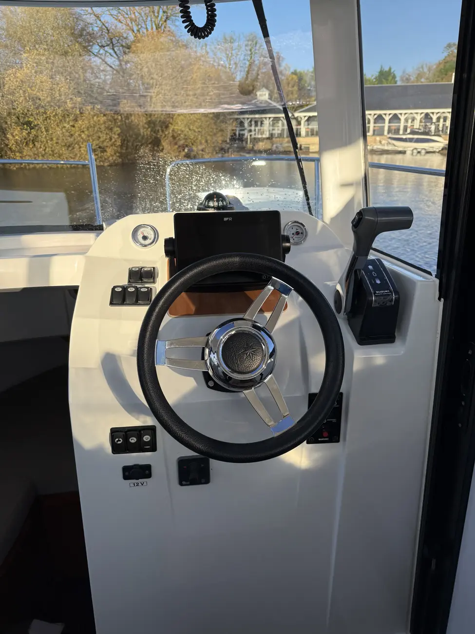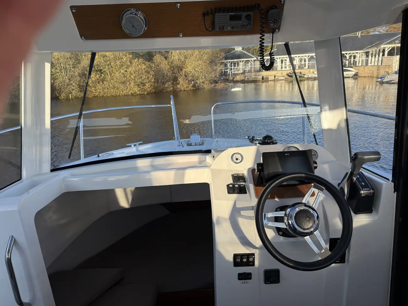 She is presented in Beautiful condition with Bow thruster, Raymarine Axiom Plus 7 combination plotter/fishfinder, Raymarine 55E DSC VHF, cold water sink, Synthetic teak decking inside and out. Seperate heads compartment with sea toilet and black water waste tank. She is powered by a 200HP Suzuki Outboard which has only done 340 hours. Please get in touch for more information.