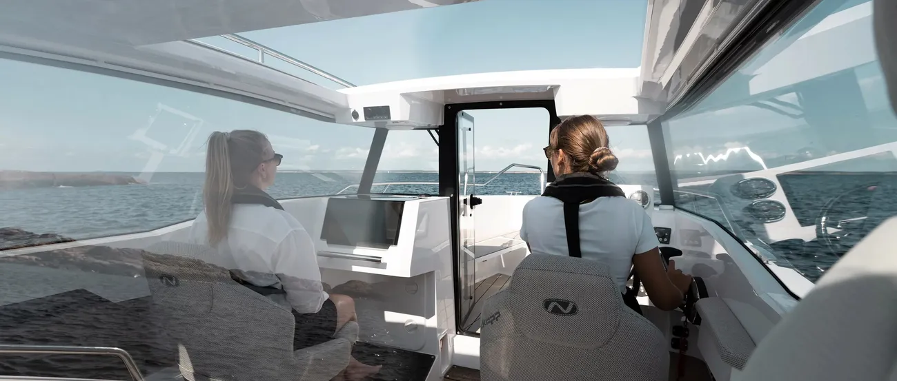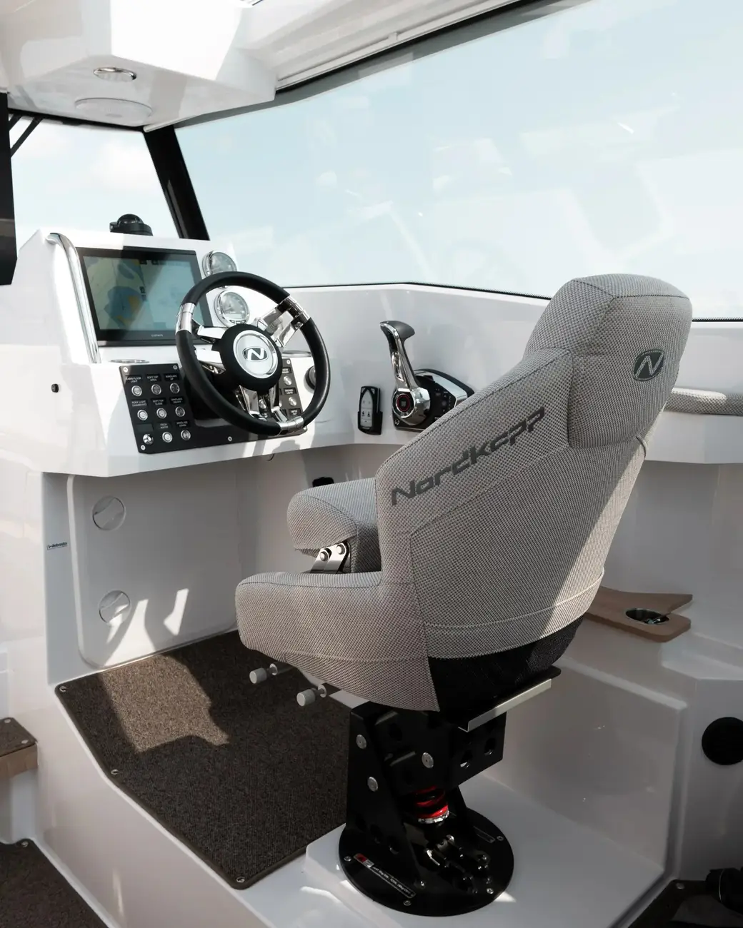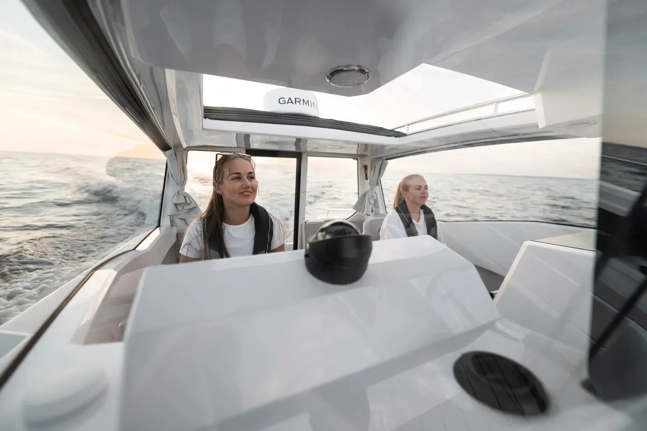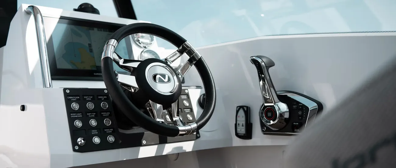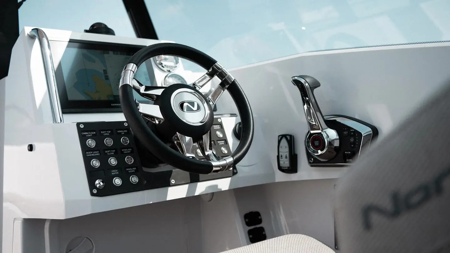 Enjoy an engaging driving experience with sporty, shock-absorbing seats, 360-degree views, and intuitive controls, ensuring a smooth day on the water.