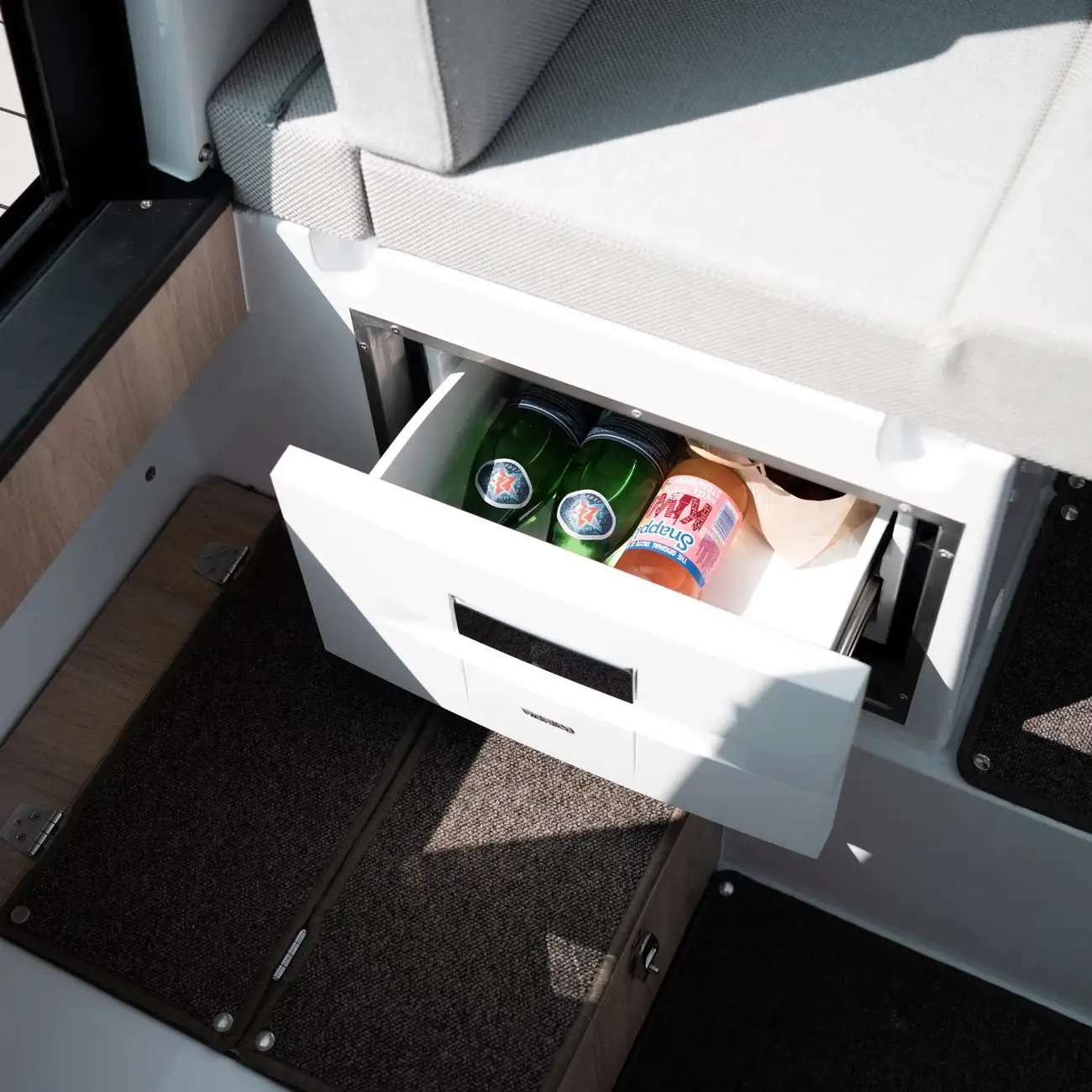 Experience minimalistic luxury with a sleek design and the essential equipment needed for an elegant day at sea.