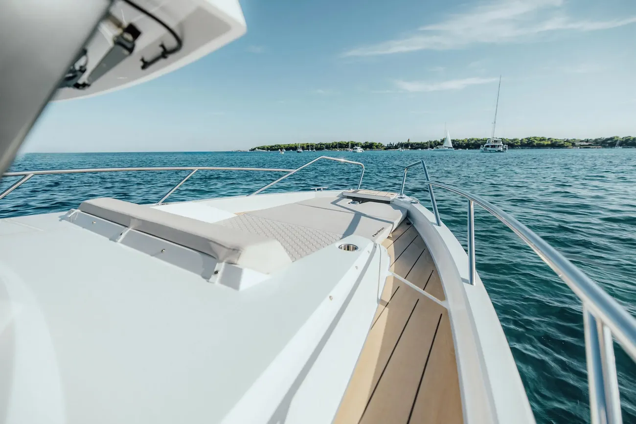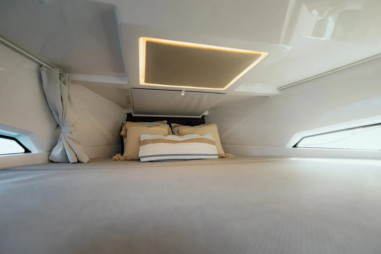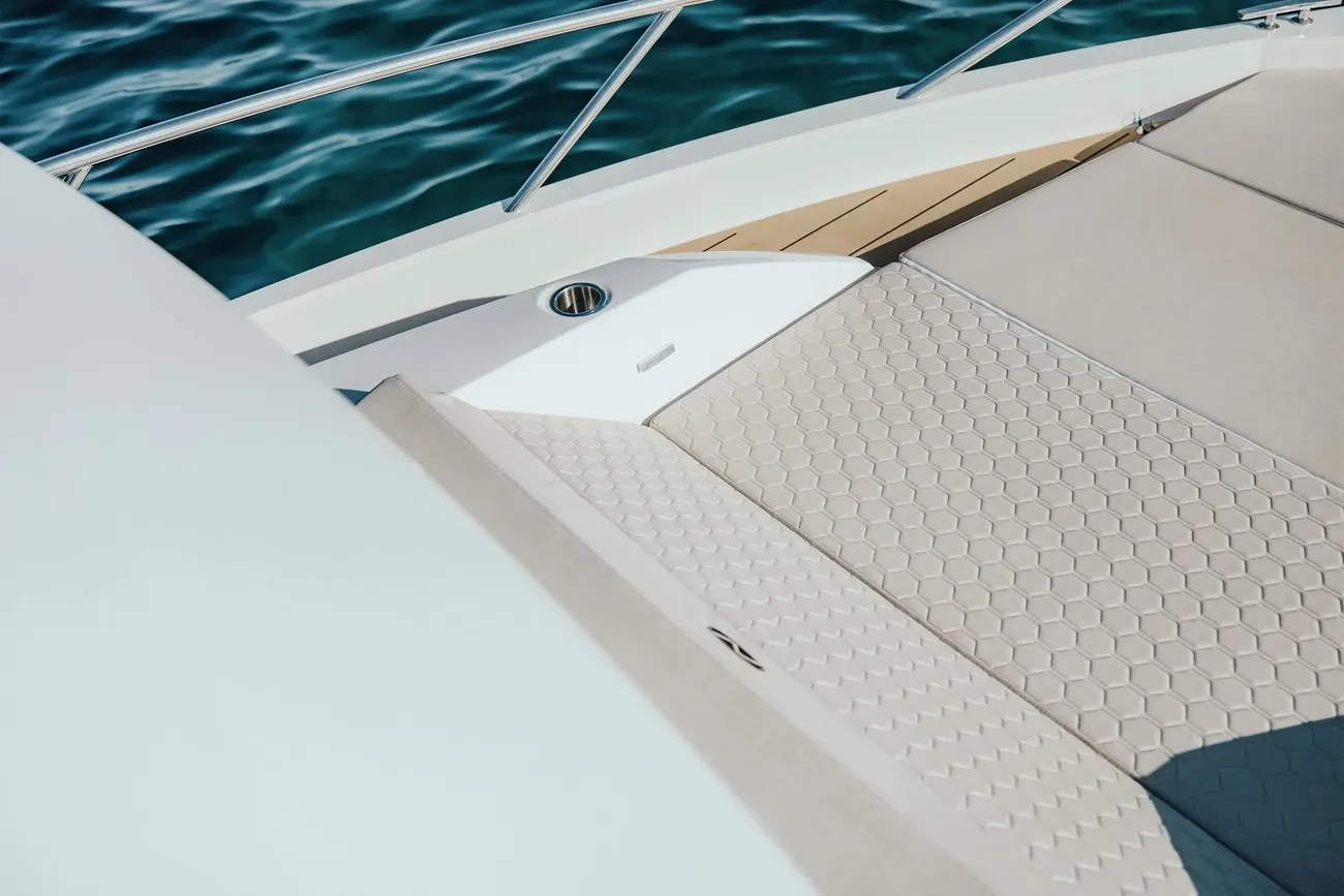 Take the time to recharge on the expansive sunbed in the bow – your ultimate destination for relaxation on the open seas.