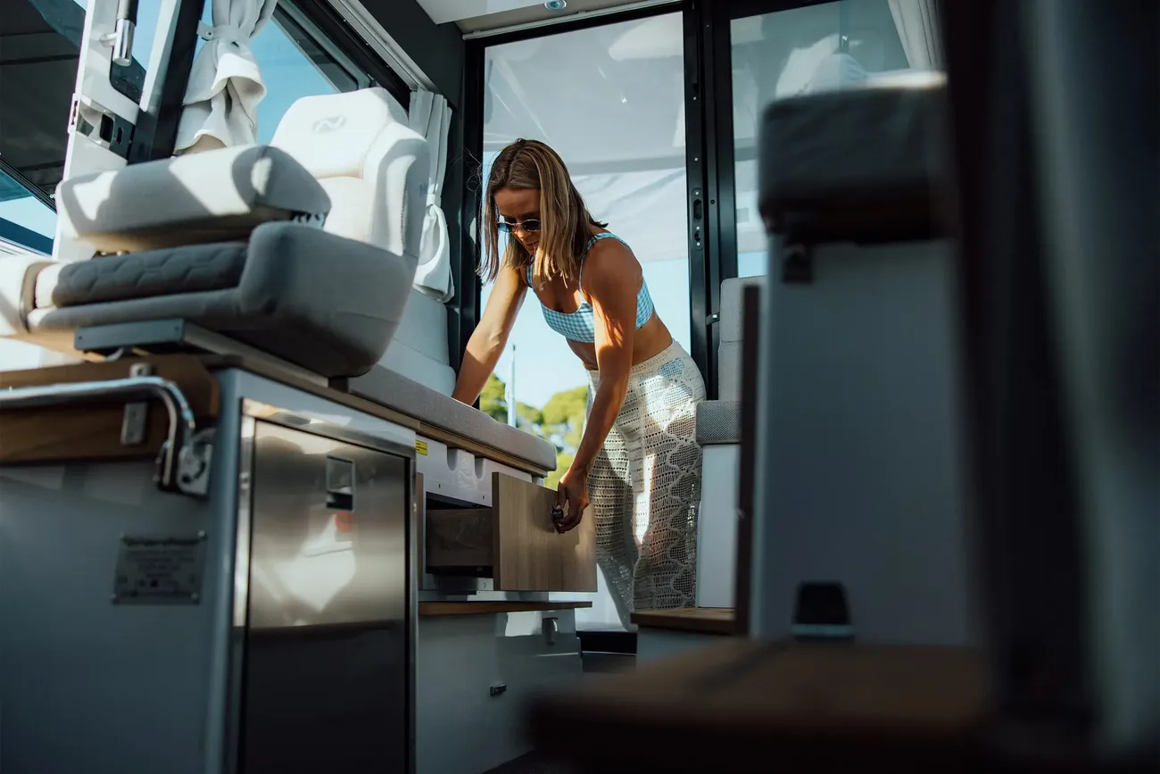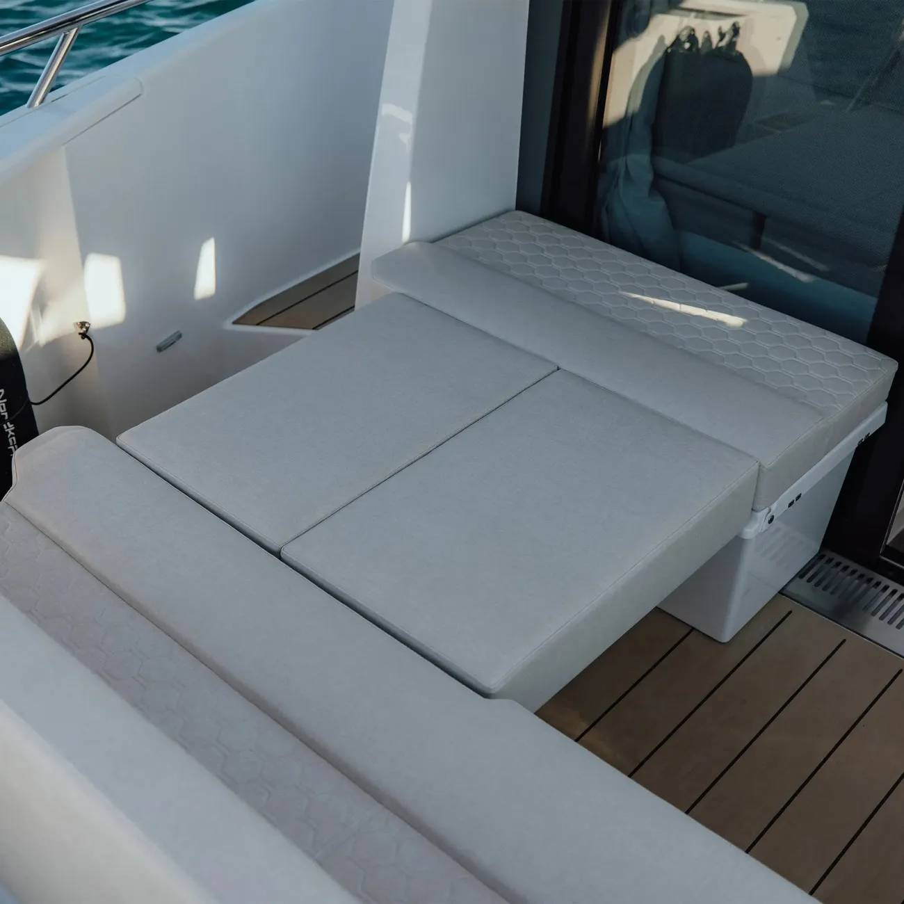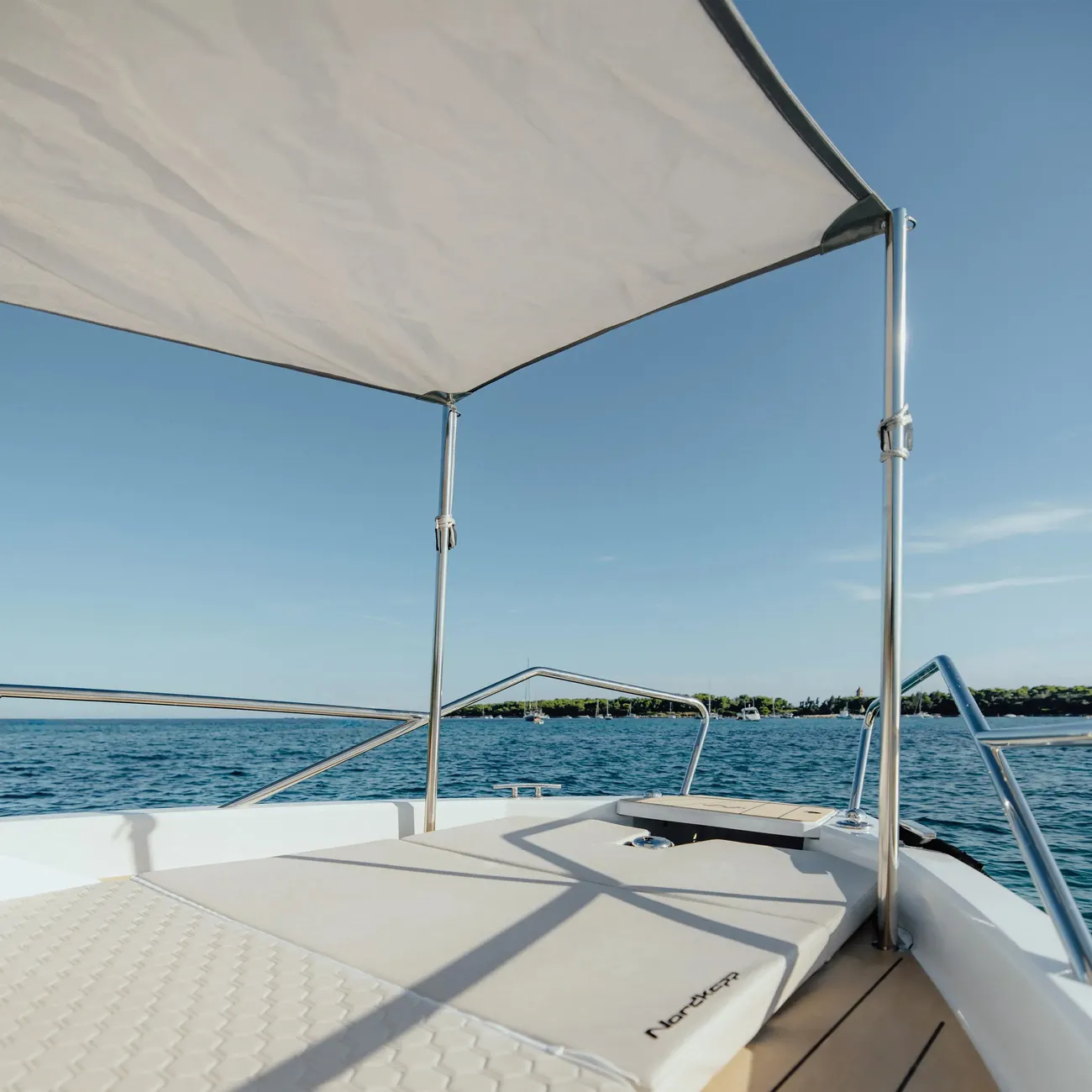 Take the time to recharge on the expansive sunbed in the bow – your ultimate destination for relaxation on the open seas.