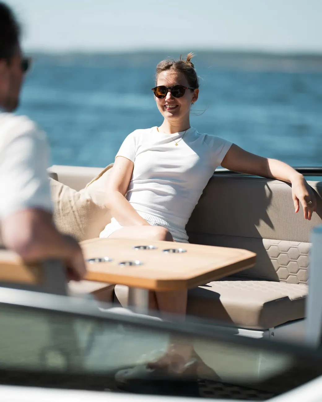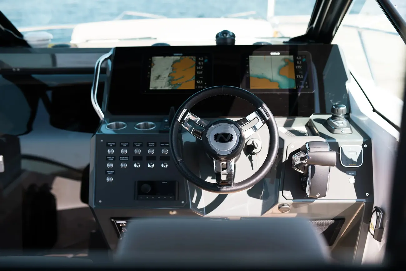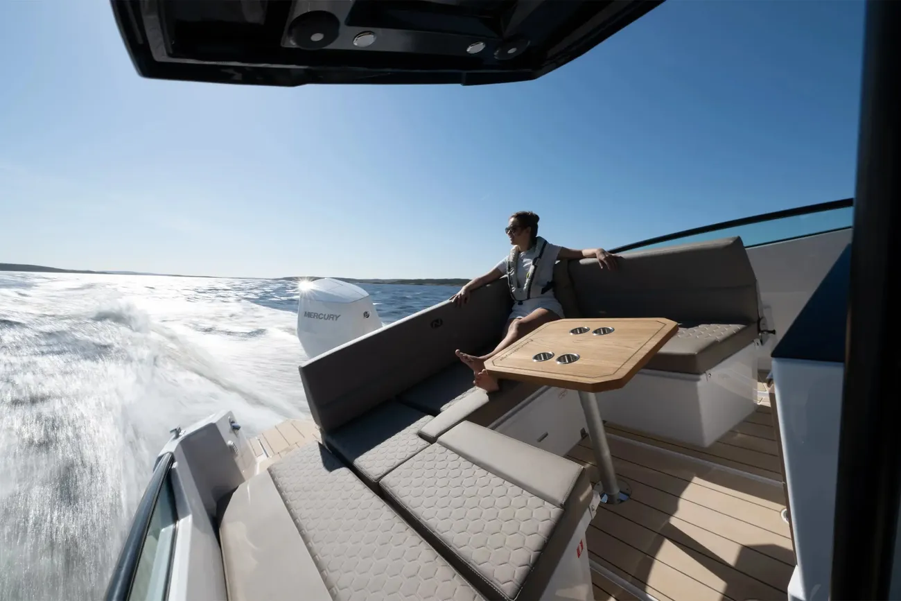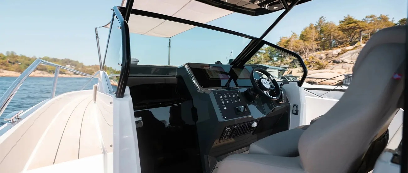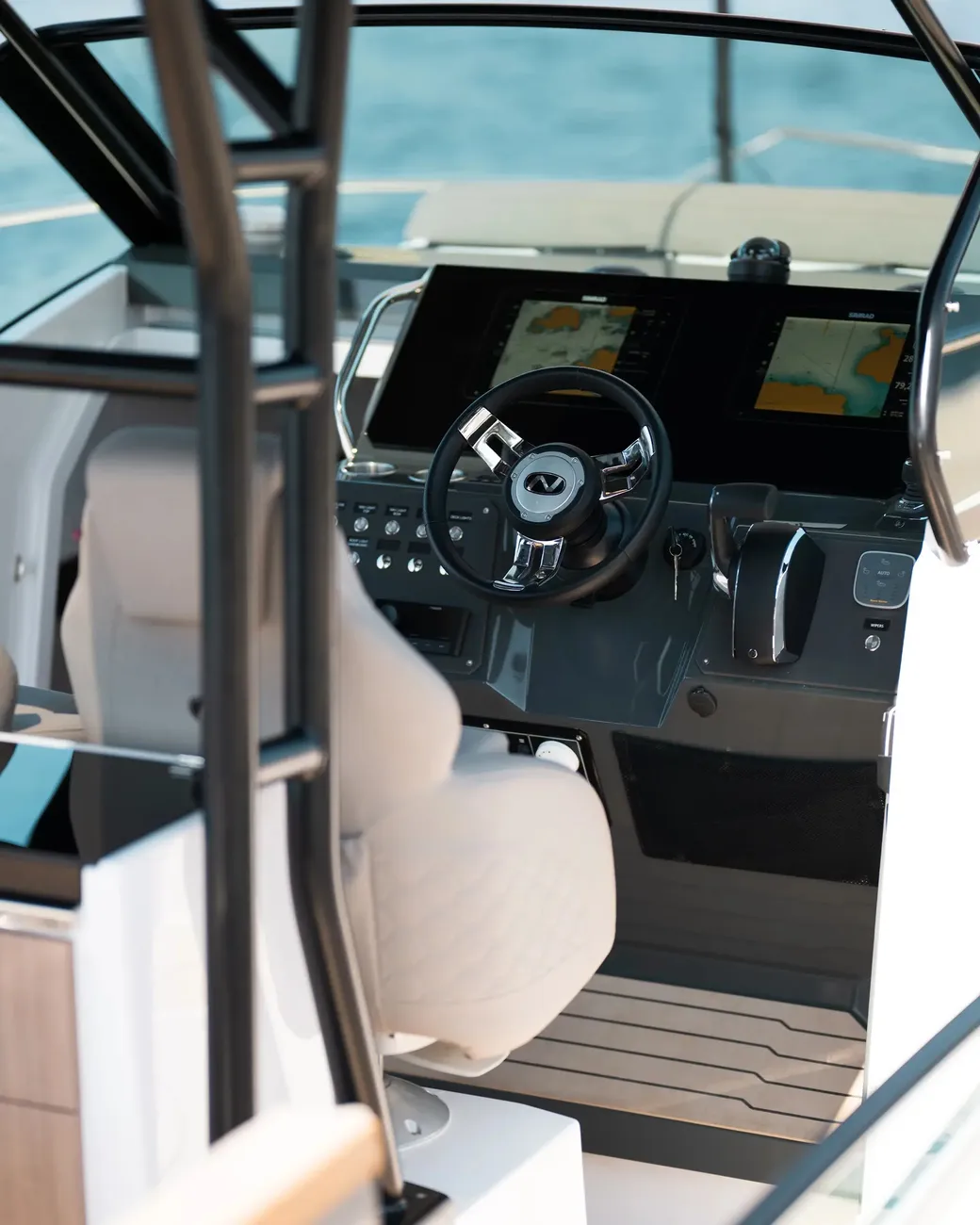 So whether you’re drawn to the openness of a boat with T-top or the practical layout of a cuddy cabin, this model brings together the best of both worlds in a refined and capable 8-meter package.