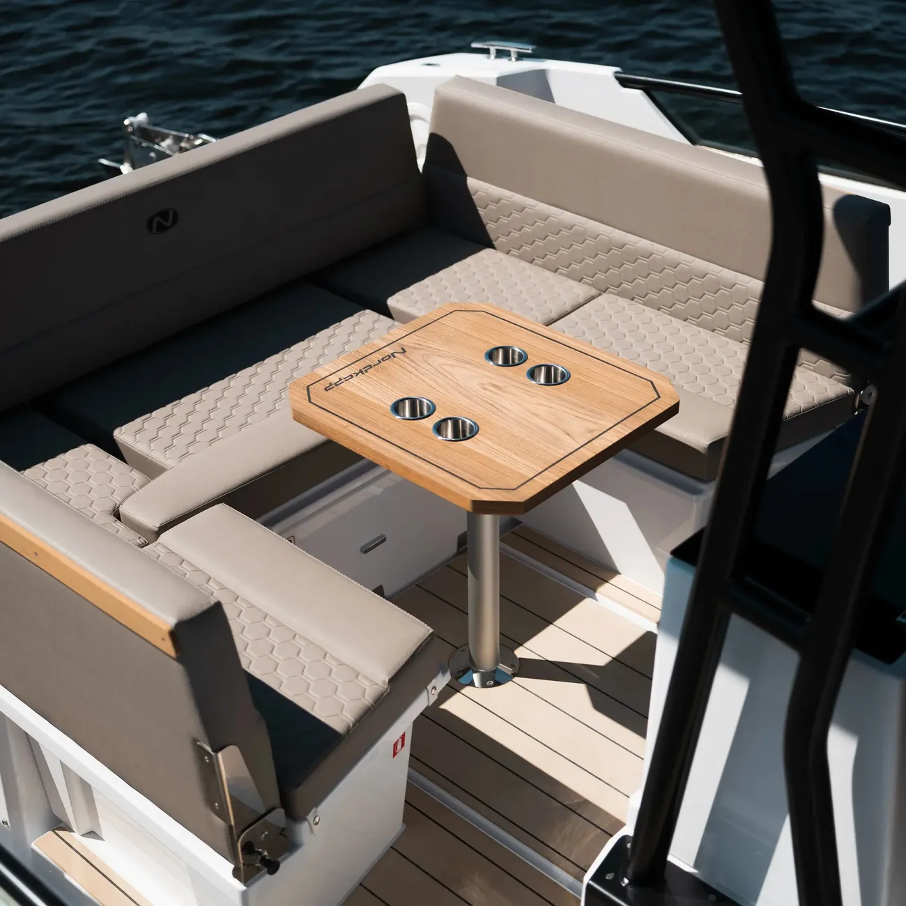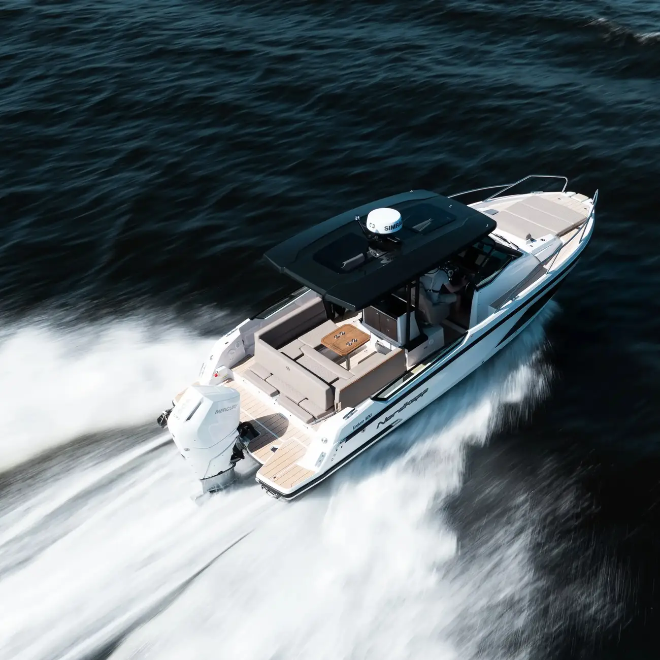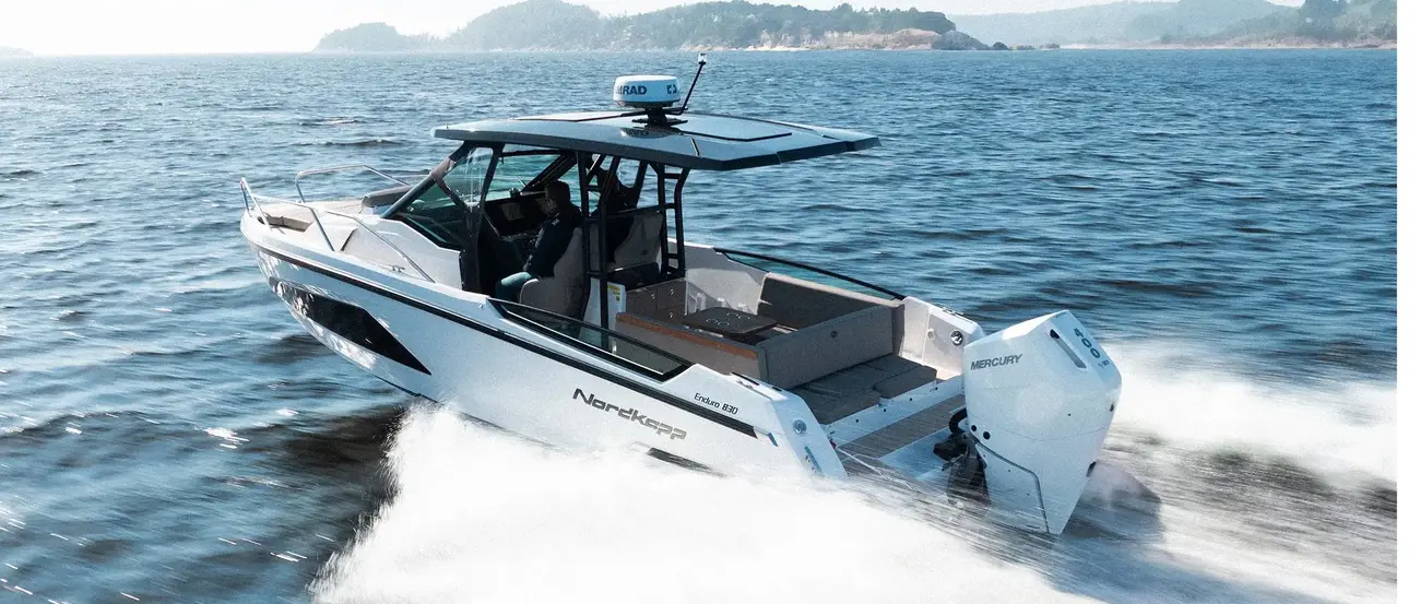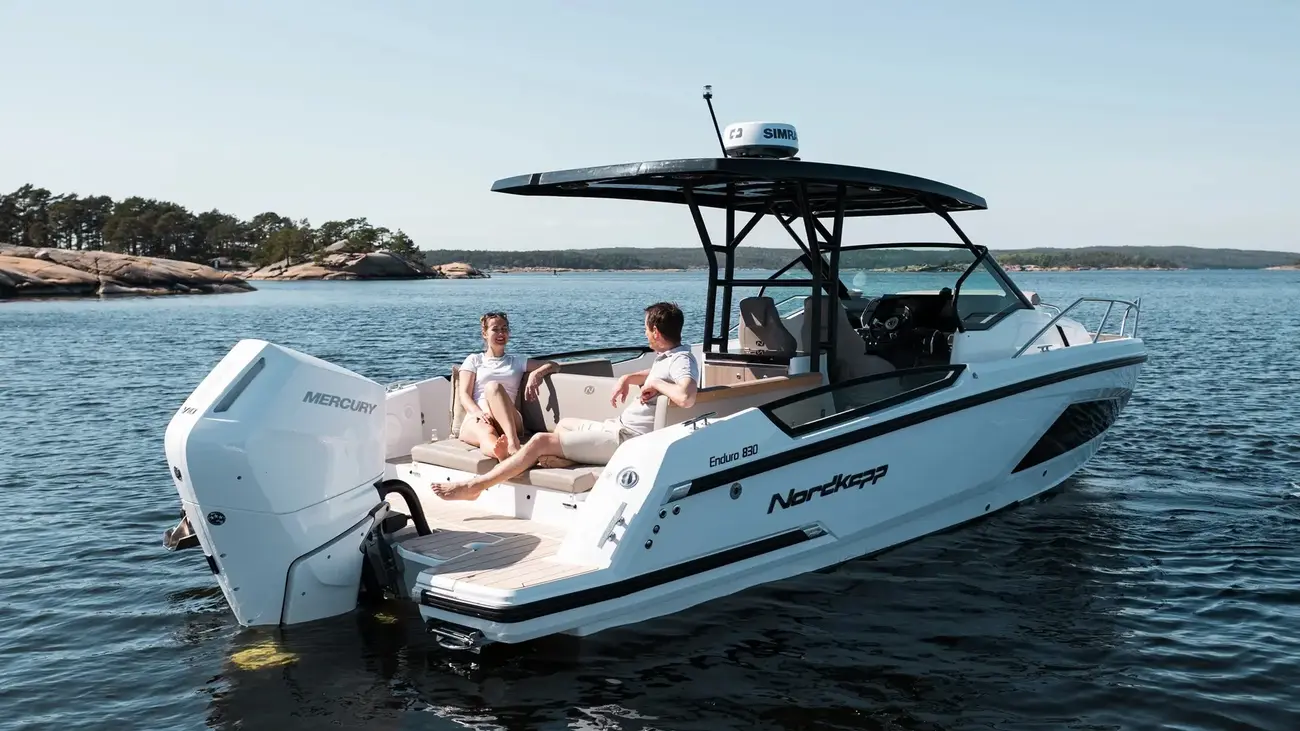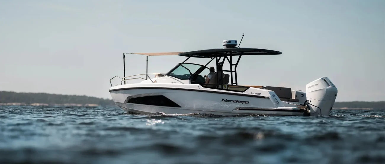 The new Enduro 830 is Nordkapp’s modern interpretation of the classic sundeck boat—blending iconic design lines with new functionality and a strong focus on versatility. As a boat with centre console layout, it offers the freedom and usability center consoles are known for, while introducing comfort levels often reserved for cabin boats. With its sleek profile, spacious bow sunbed, and the protection of a well-integrated T-top, the Enduro 830 stands out as a true Scandinavian cruiser.