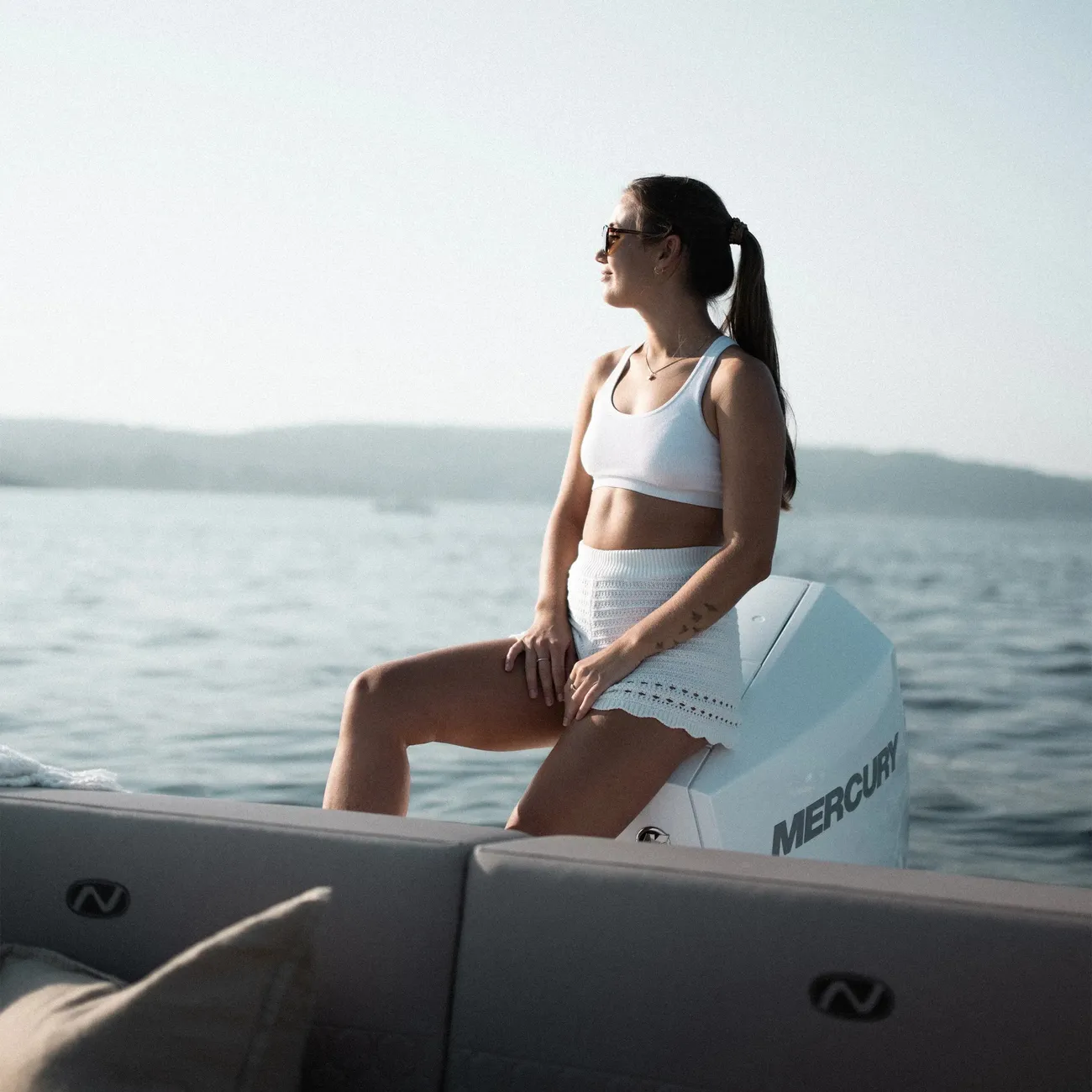 The wide and deep V-hull effortlessly glides through the waters with a stability and grace that promises to take your breath away.