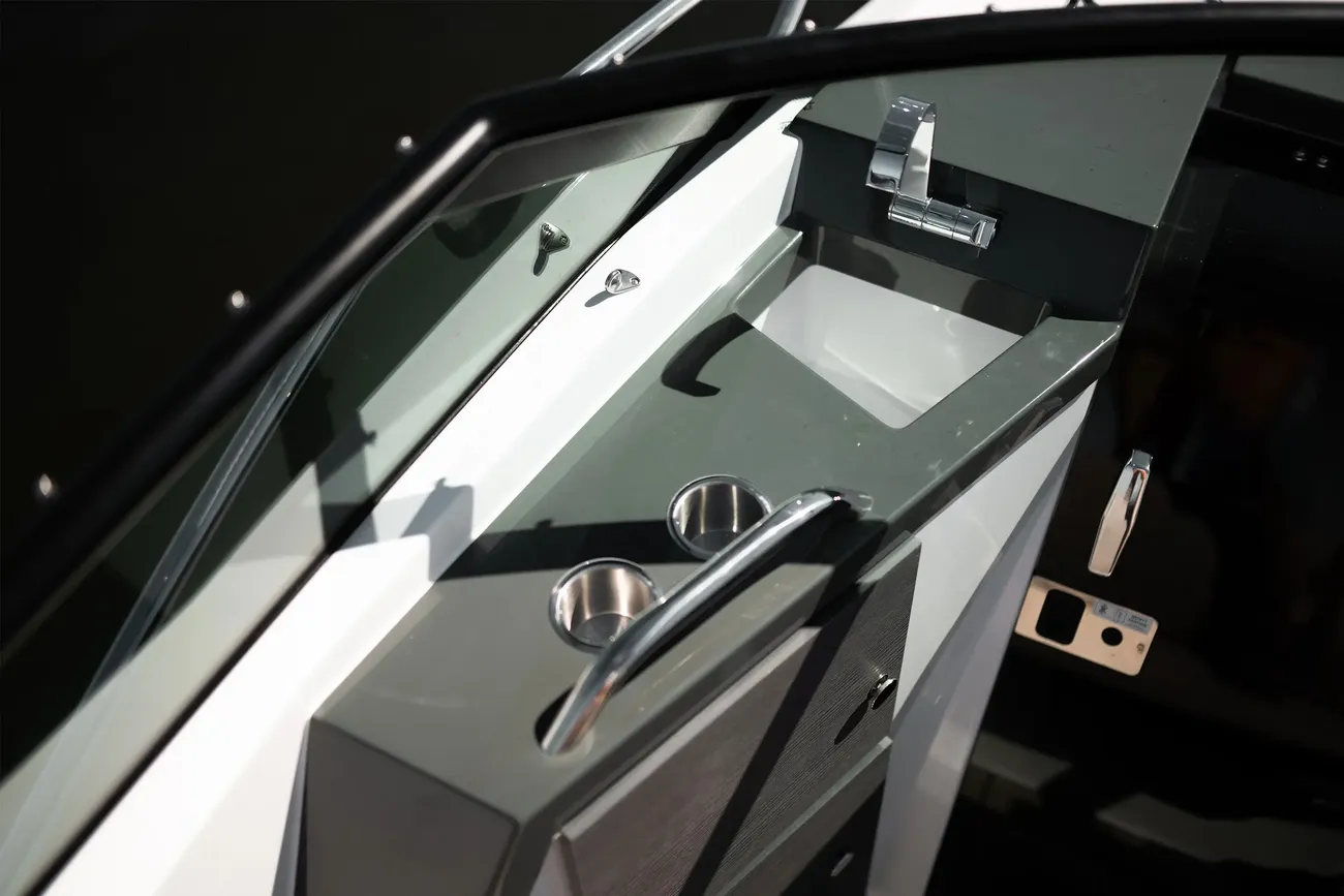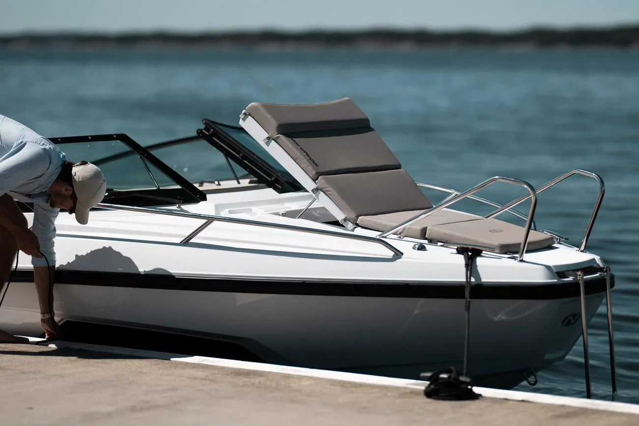 Showcasing a refined Scandinavian design, featuring sleek lines and a sporty profile that turn heads on the water.