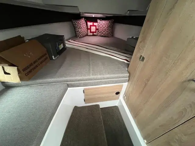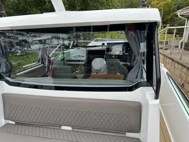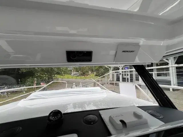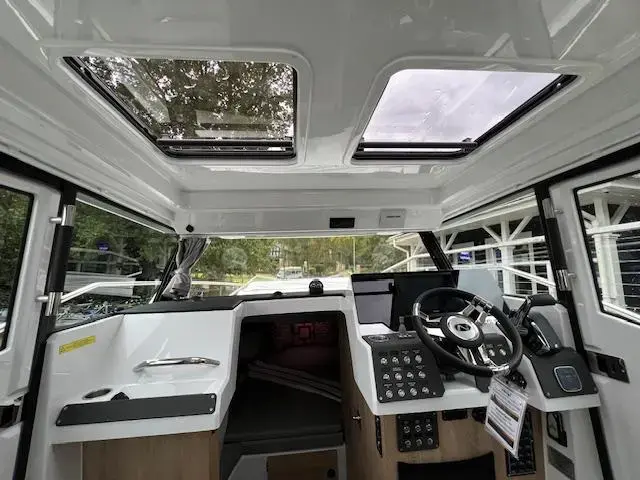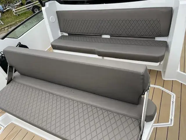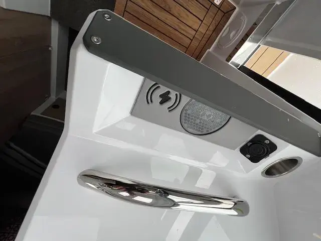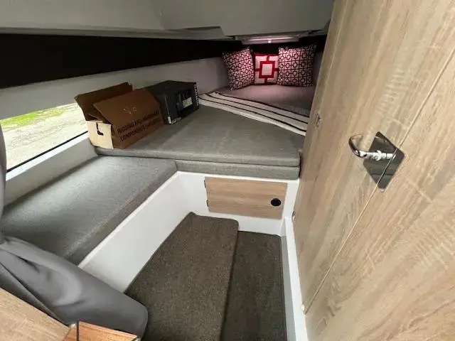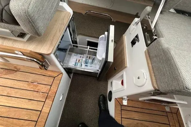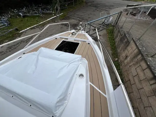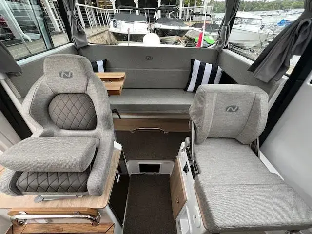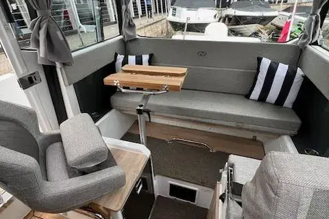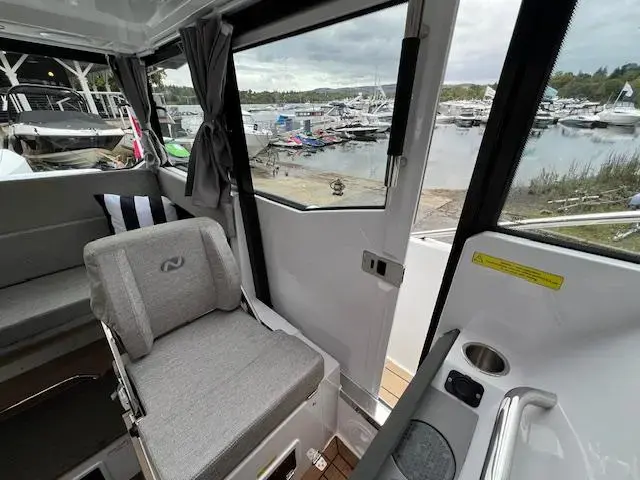 Nordkapp 830 Coupe. This is the very latest model from the legendary Norwegian boatbuilders. Offering all weather boating in this extremely seaworthy luxurious craft. She is fitted with the magnificent Mercury 300HP V8 outboard engine. She sleeps up to four, 2 in the forecabin and a further 2 in the wheelhouse. She is accessed by sliding doors port and starboard, and is equipped with gas stove, hot and cold water twin sliding rooflights and an electric quiet flush toilet. The helm is equipped with a Garmin 1223xsv plotter screen with a GTM15 in hull transducer, mercury vessel view , Lectro trim tabs with auto trim and a fusion RA210 with 4 x 200w speakers. She also benefits from shore power. electric windlass with 40mtrs od stainless steel chain and anchor. Externally she aft cockpit deck bench seats and sundeck cushions on the bow and synthetic teak decking. She really is a tremendous family weekend cruiser that will be safe and steady in any weather.