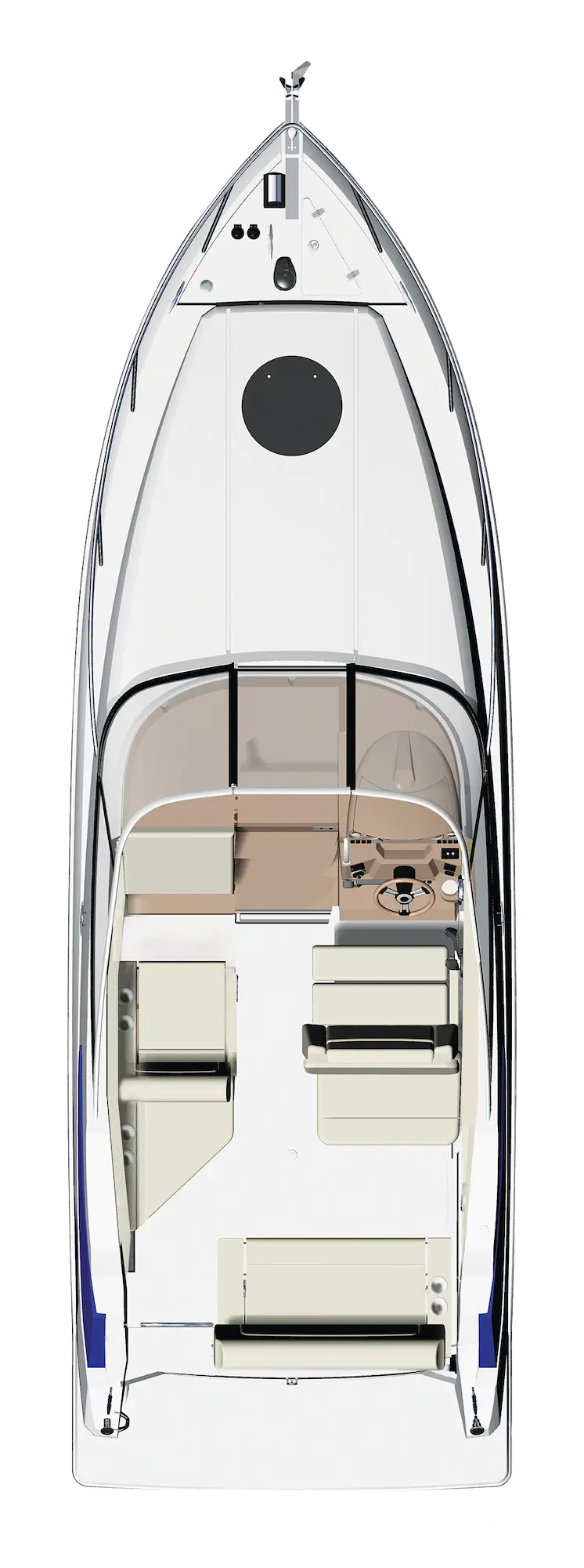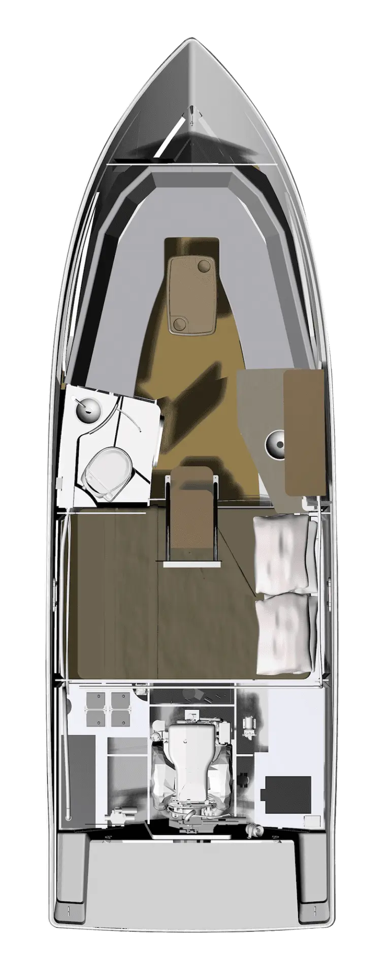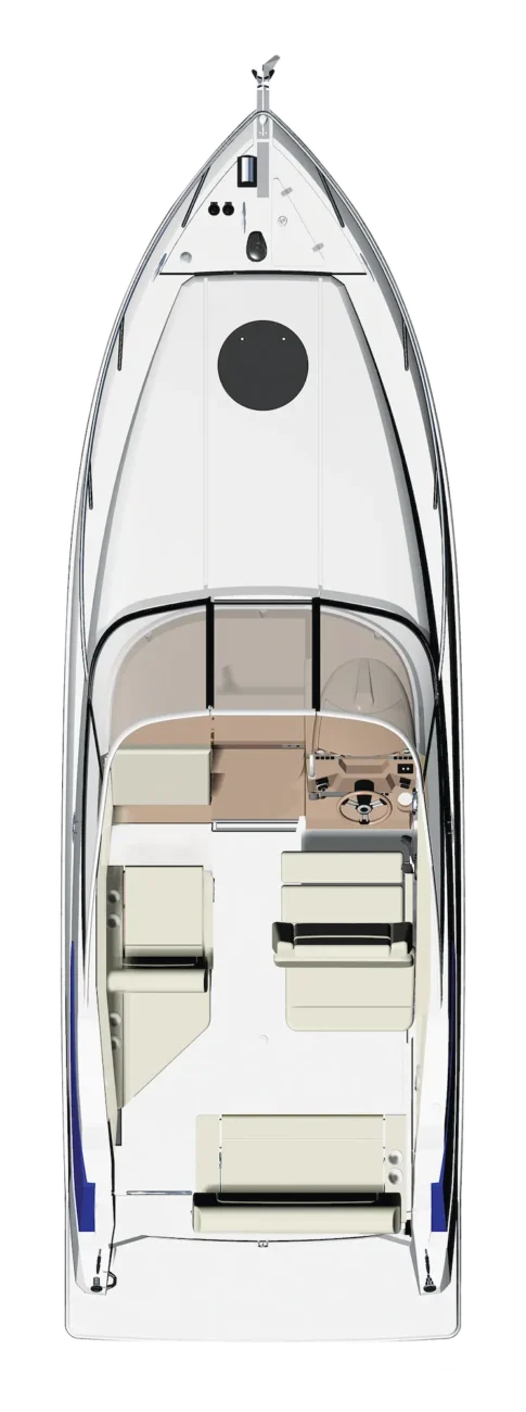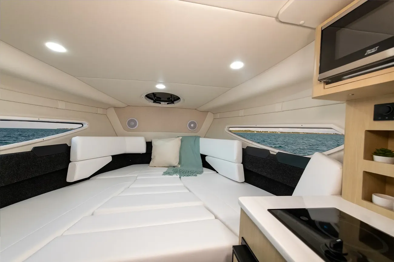Experience your grand adventure in the Regal 26 Express, a vessel that embodies superior comfort and function from top to bottom. With the seemingly-unlimited versatility of the cockpit seating and a generous salon—complete with an entertainment center and full-sized aft berth—this bold cruiser has it all.