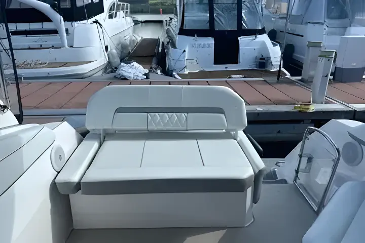 This is an ideal weekend cruiser with the feel of a much bigger boat due to her smart and practical lay out, she has modular seating in the cockpit with a large sun pad, chez lounge, comfortable captains chair and beautiful leather upholstery in like new condition, she also has removable carpets.
