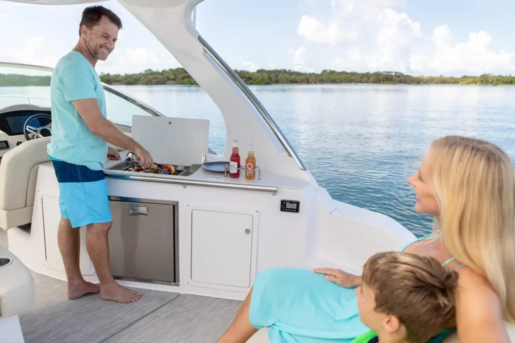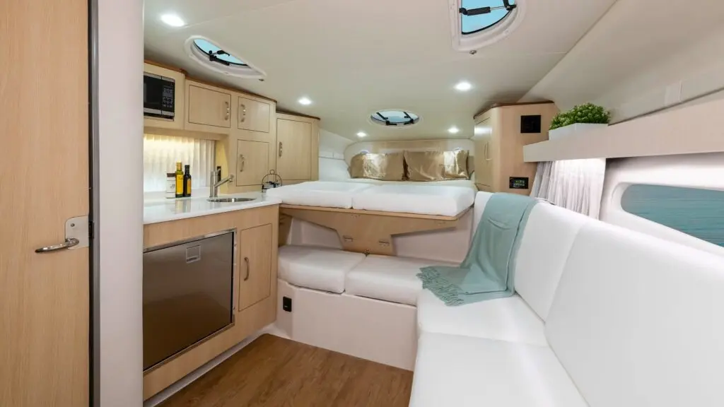 The Regal 33 Express is a have-it-all, do-it-all cruiser for boaters seeking unforgettable experiences. Relax in the wide-open spaces above-deck or take a break below and enjoy premium amenities in an expansive cabin. Whether you’re serving up lunch, tubing with the family or spending a weekend all together on the water, the stylish and accommodating 33 Express makes a statement worthy of conversation.