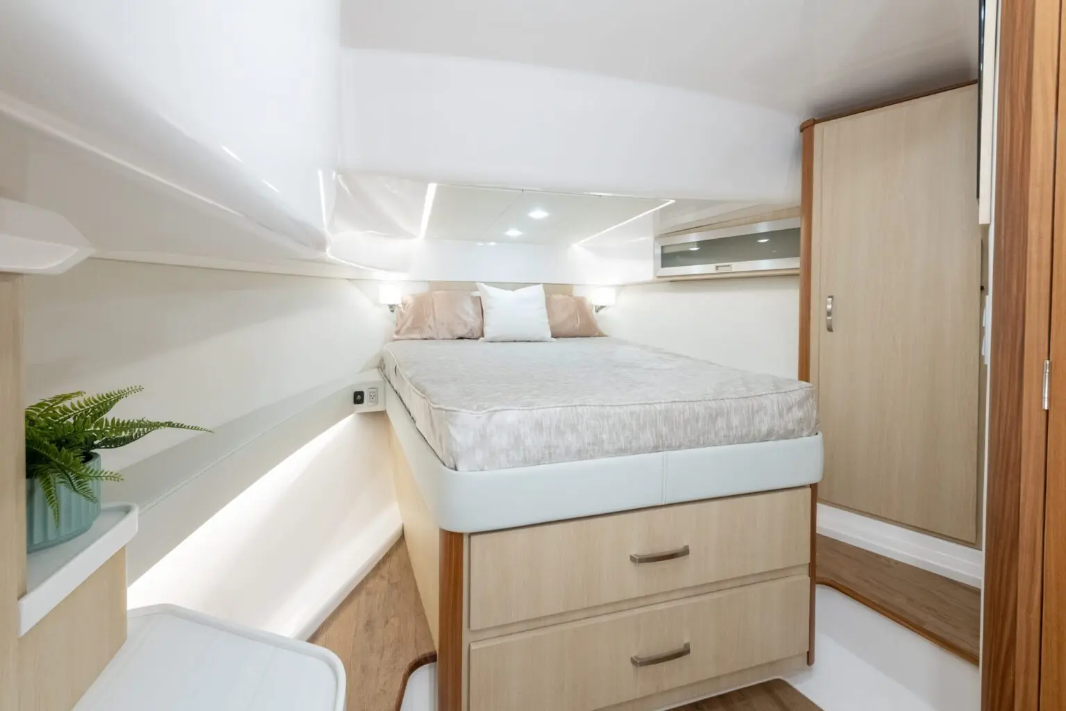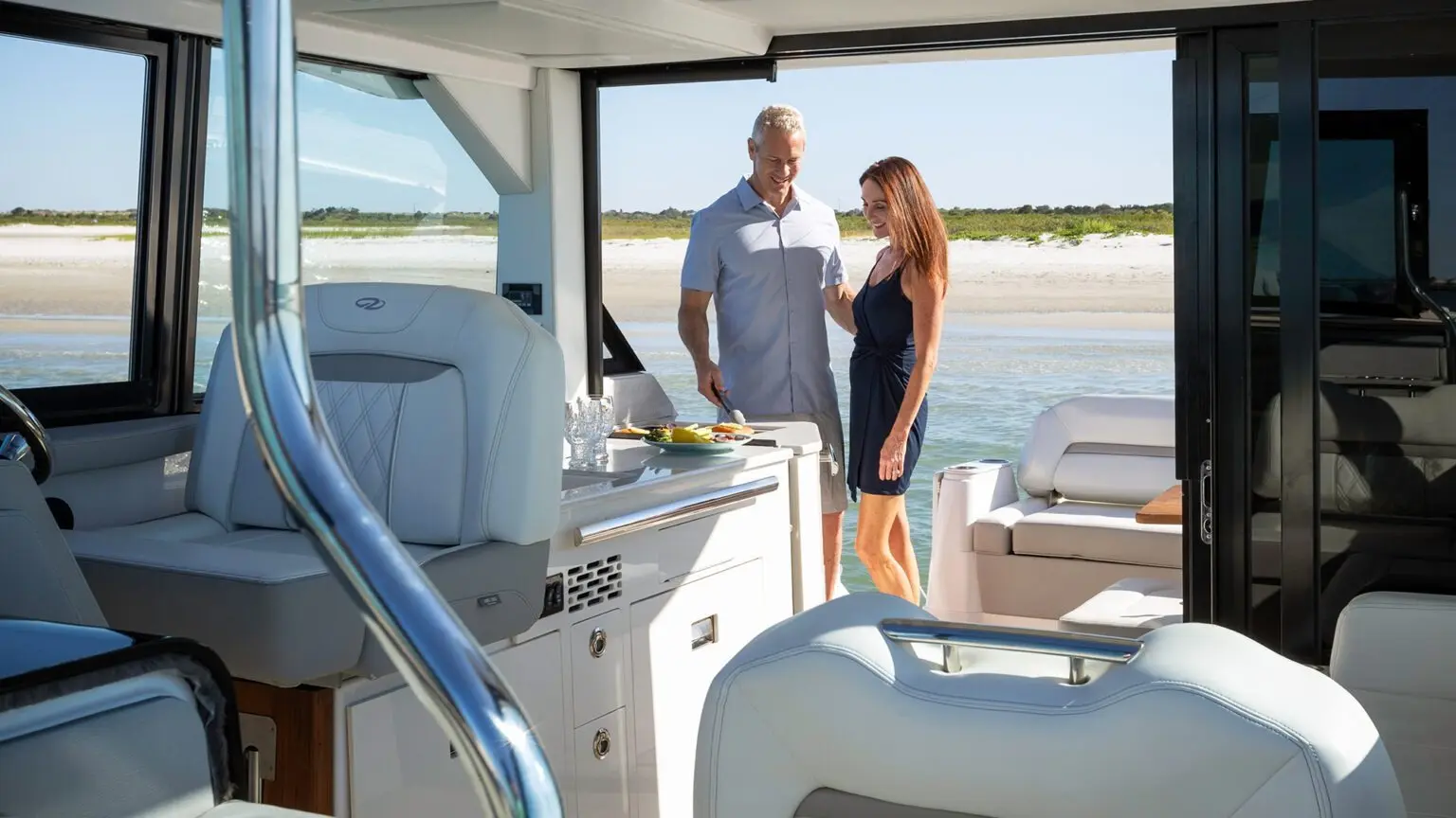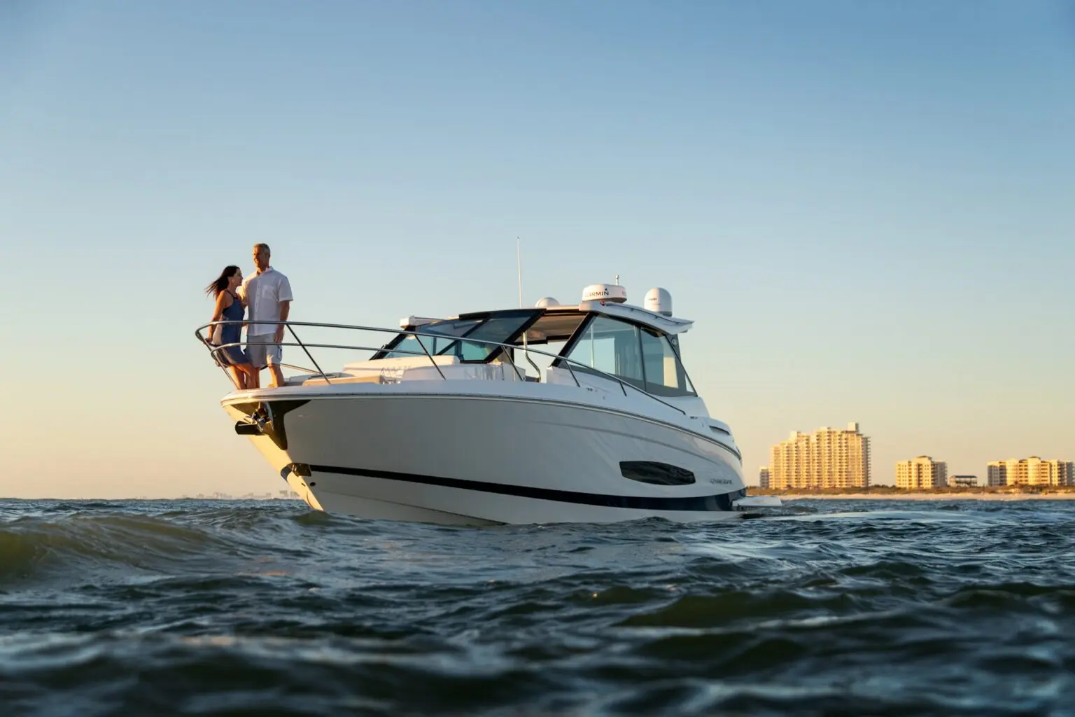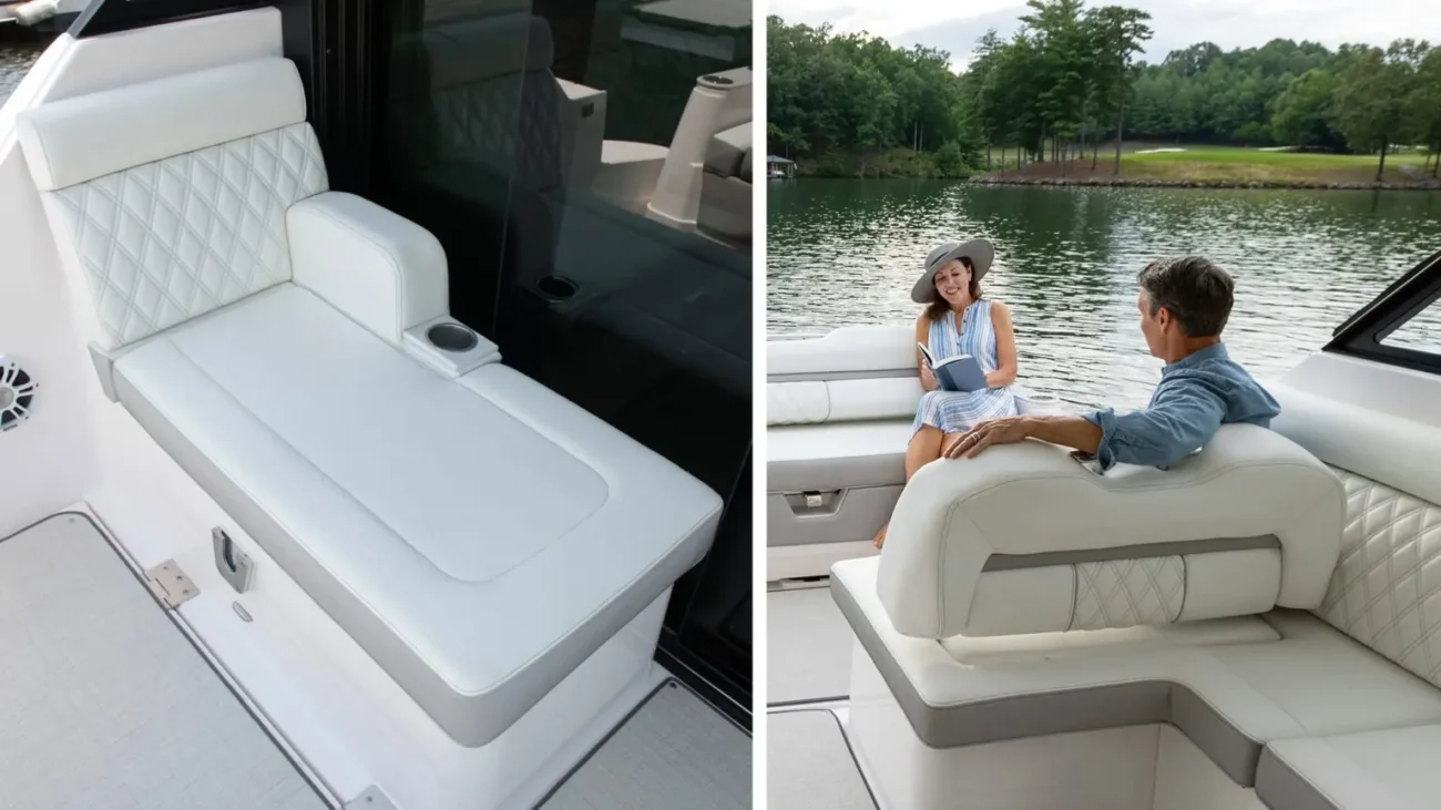The 36 XO is the total package, providing space for any activity. Soak up some sun in oversized bow seating, get cozy below in the California Queen and spacious settee, or pull into port and get ready for a night on the town after freshening in the elegant walk-in shower. From multi-position seating to additional legroom in the aft, there’s plenty of space to spend an exciting weekend away with family and friends.