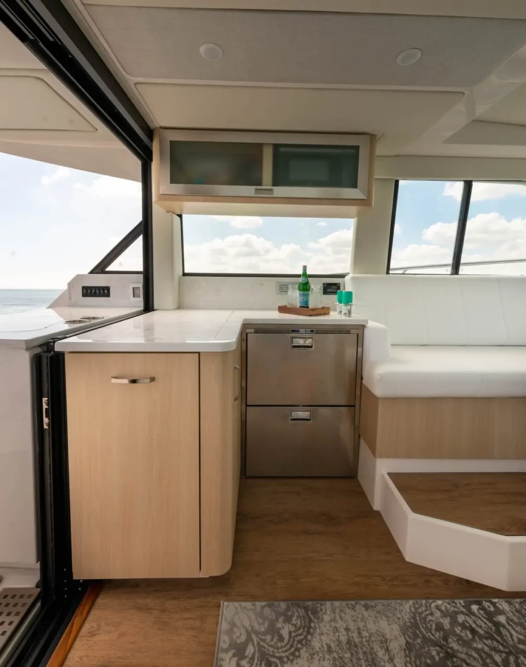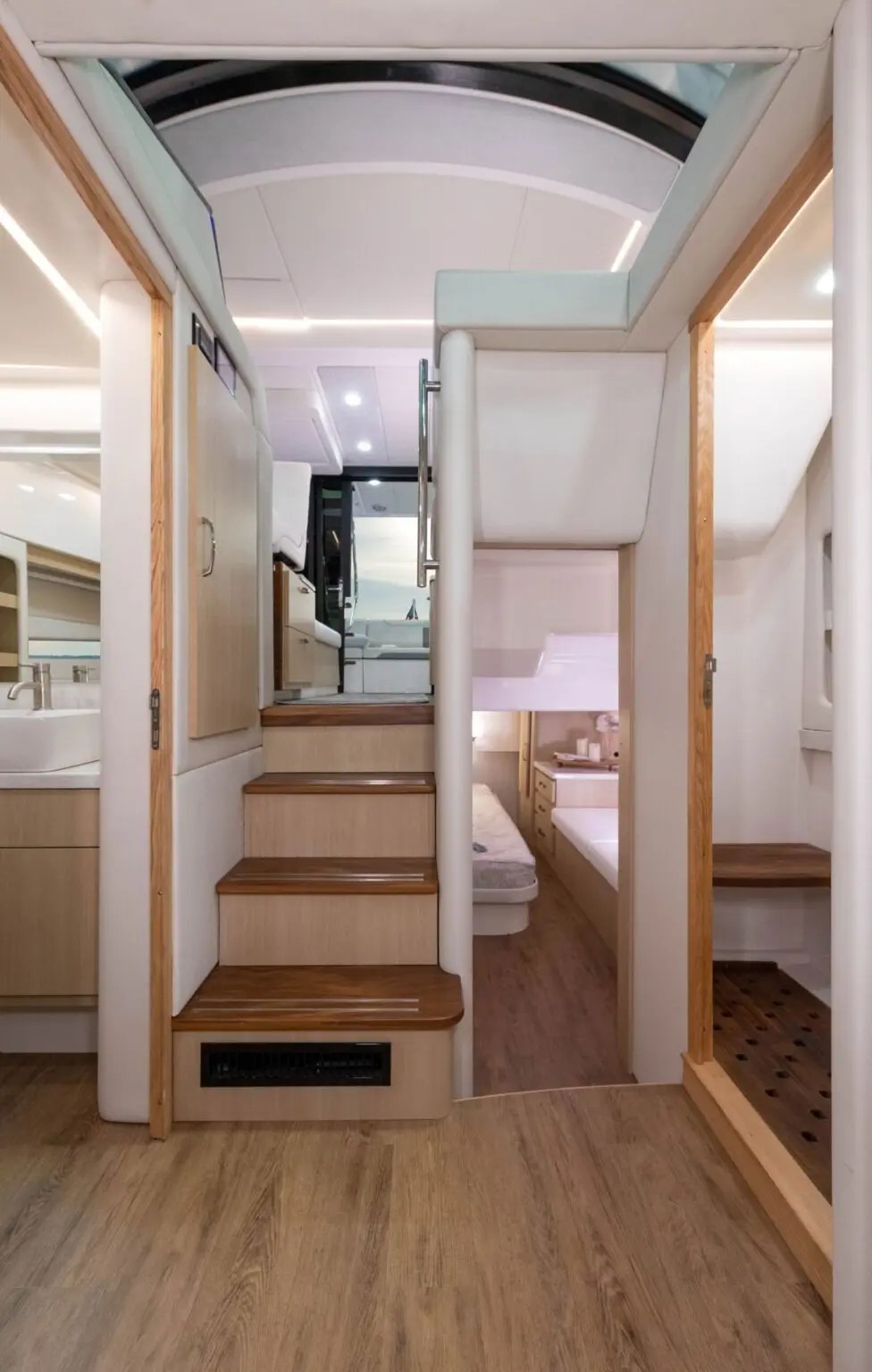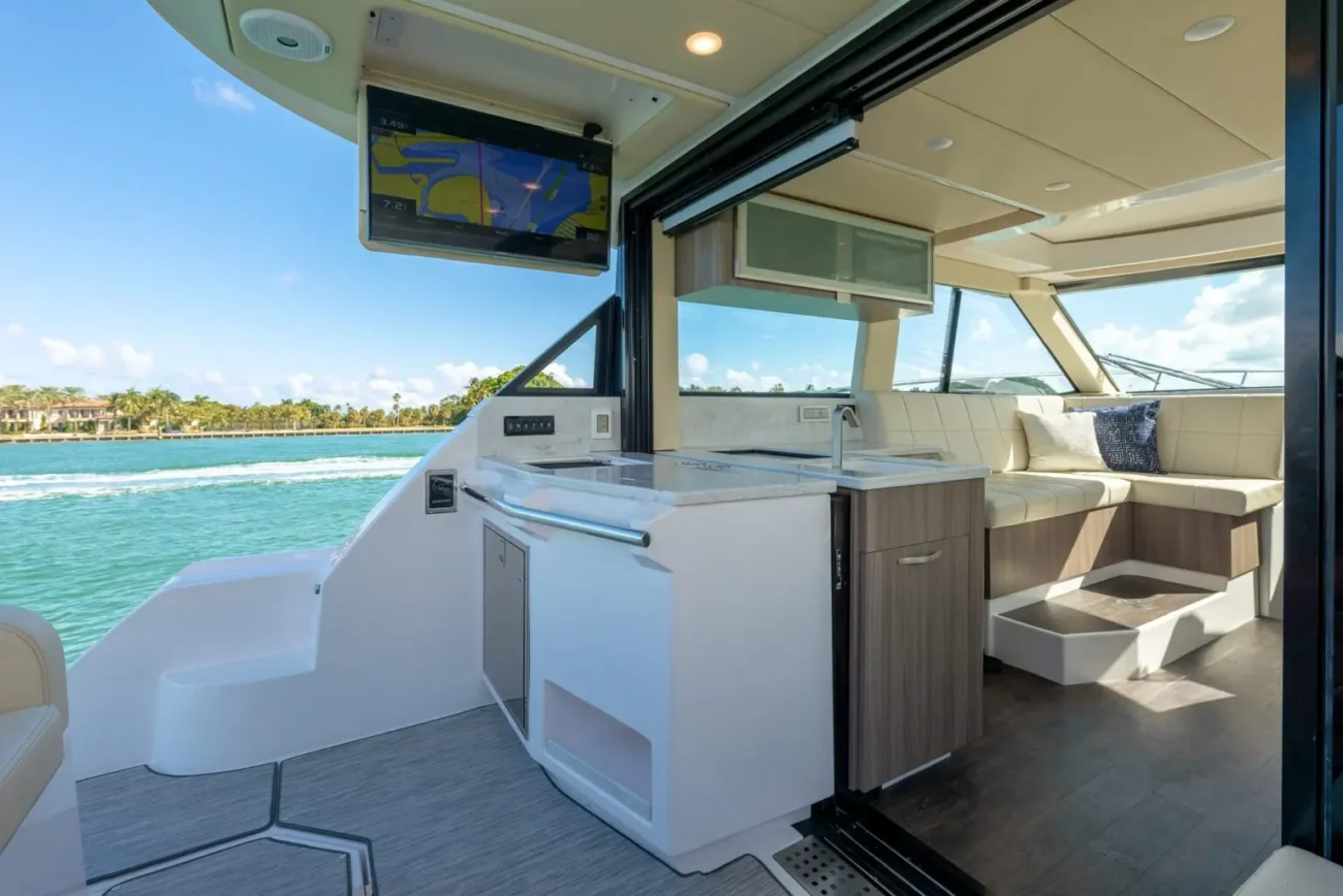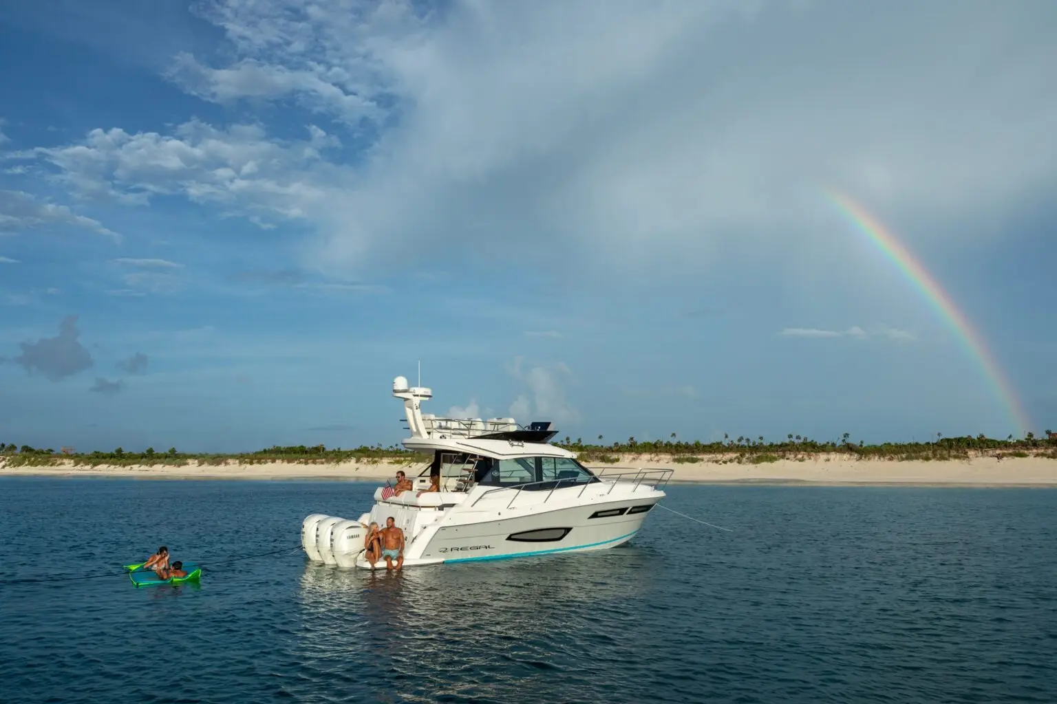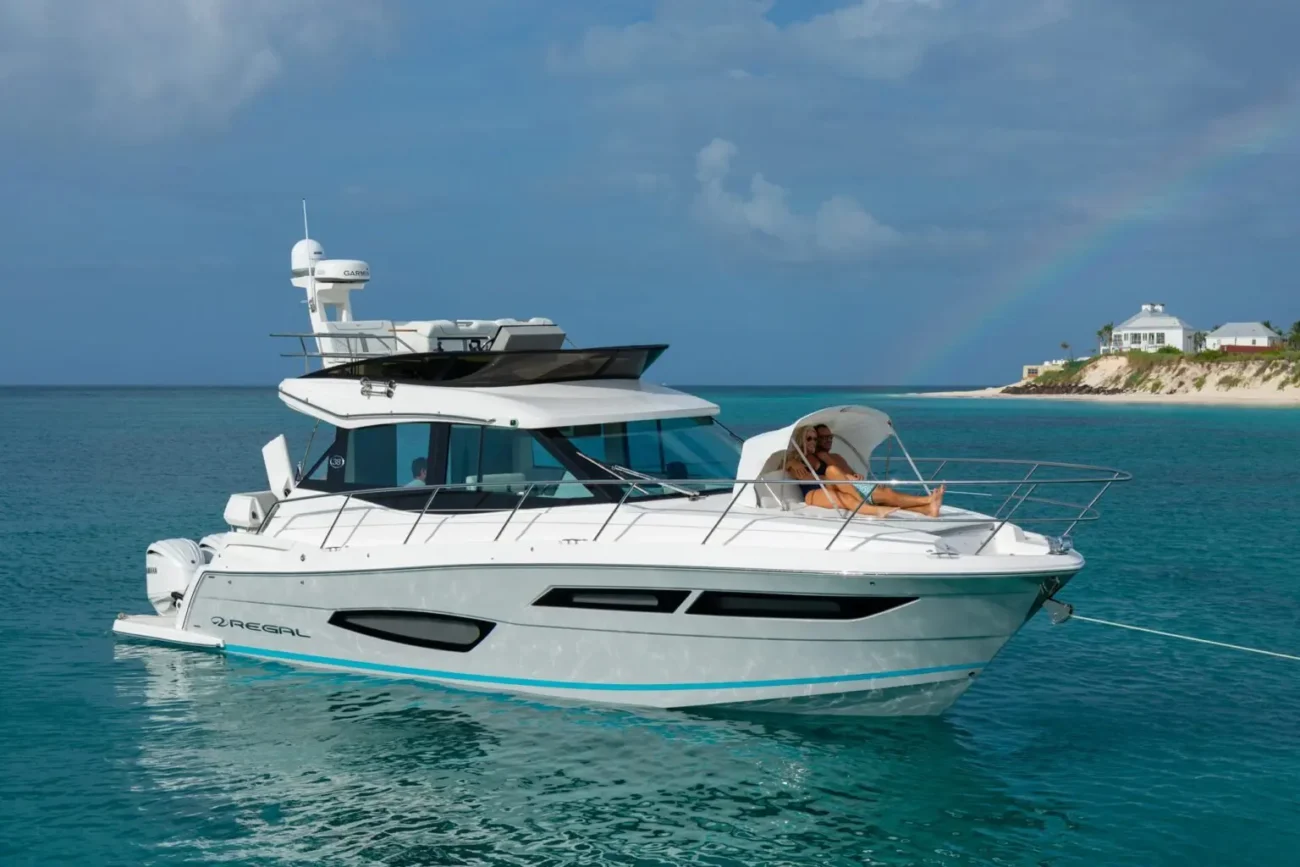 Make new memories, reach new heights and chart new paths in the Regal 38 FXO. This outboard-powered yacht provides ultimate versatility and elevated 360° open-air views. Take in the beauty of the water from anywhere on board, whether you’re out on the flybridge or surrounded by panoramic windows in the climate-controlled upper-salon. No matter what course you’re on or the weather you’ll have along the way, the Regal 38 FXO has you comfortably covered.