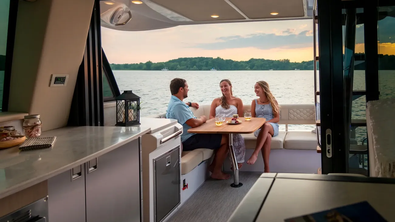 Boasting a spacious flybridge, luxurious open air atrium and the most innovative features in more than 50 years of boating excellence, the 42 Fly is truly one-of-a-kind. Whether you want to explore uncharted waters, elevate your view of the sunset or take a memorable weekend trip with some loved ones, the 42 Fly can do it all in style.
