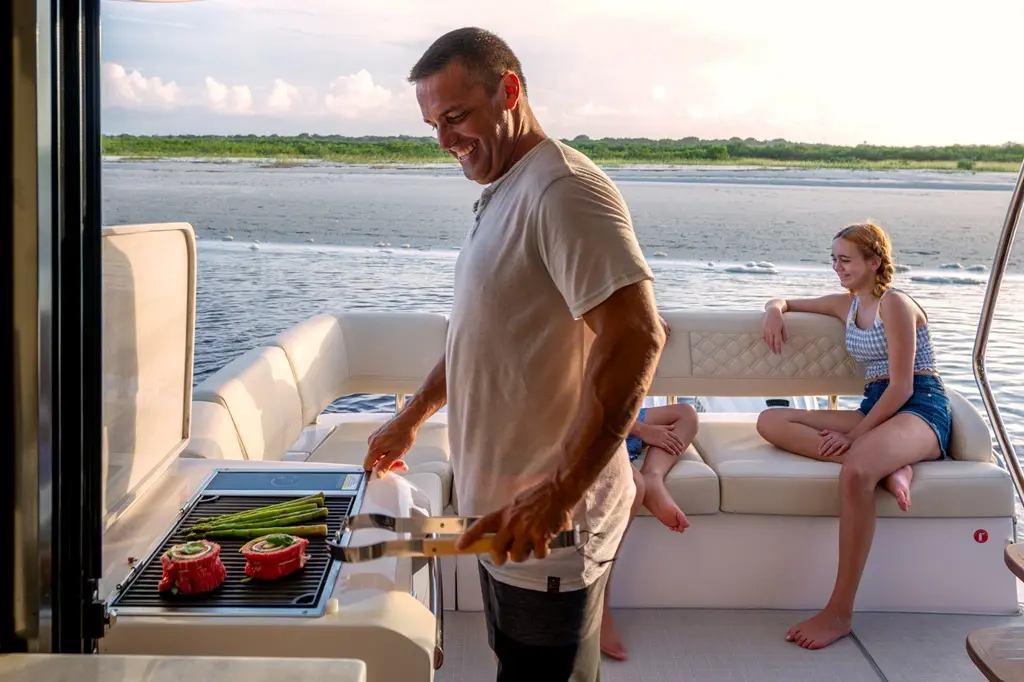 The Regal 42 FXO is the ultimate outboard-powered sport yacht. And with its versatile, pull-up, easy-to-maintain motor, it makes an excellent sandbar-hopper, too. Exceptional performance, outboard versatility and high-end luxury set the stage for endless entertainment and relaxation on the water—regardless of your destination.