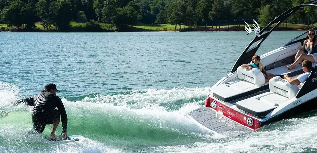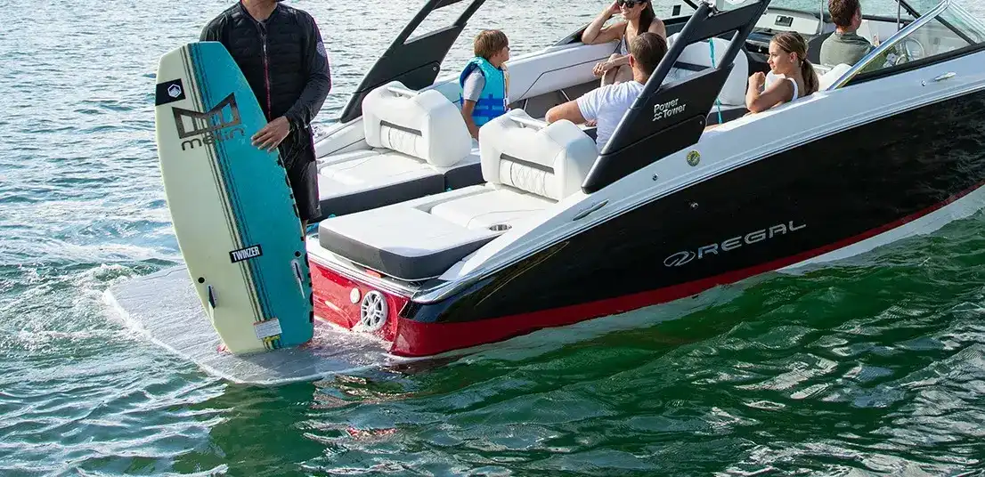 Using powerful, cutting-edge technology, the Regal LS4 Surf is able to maximize the performance of every wave it creates. With its modern and innovative surf system, you can adjust your boat’s speed, trim and ballast at the touch of a button. The Regal LS4 Surf is designed to give you total control—and more time to have fun in the sun.