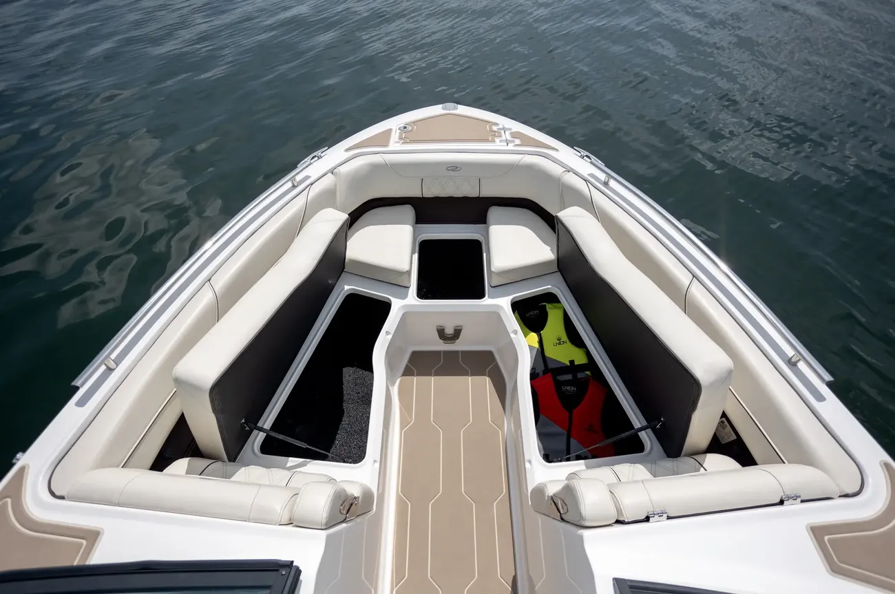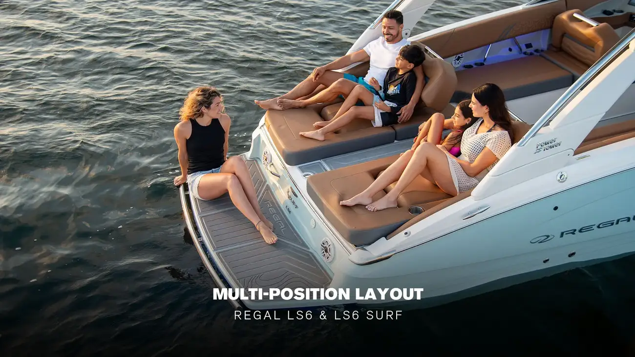 Capable of both leisure and adventure, the Regal LS6 is the ultimate balance of style, comfort and versatility. Kick back and relax with your guests anywhere as ample room to spread out can be found in the versatile bow itself, the lounging area of the transom, or even at the helm in the captain and co-captain chairs. The Regal LS6 makes it easy for everyone on board to enjoy the thoughtful, innovative features that take your day to the next level.