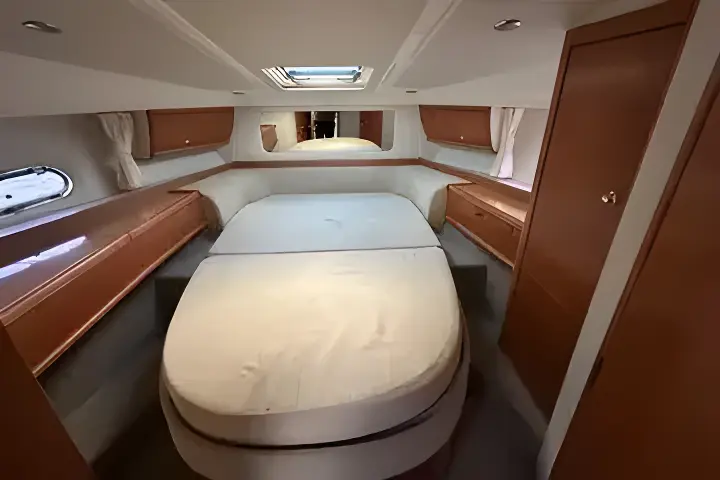 A luxurious flybridge cruiser, currently moored at Cameron House Marina and available with the berth.