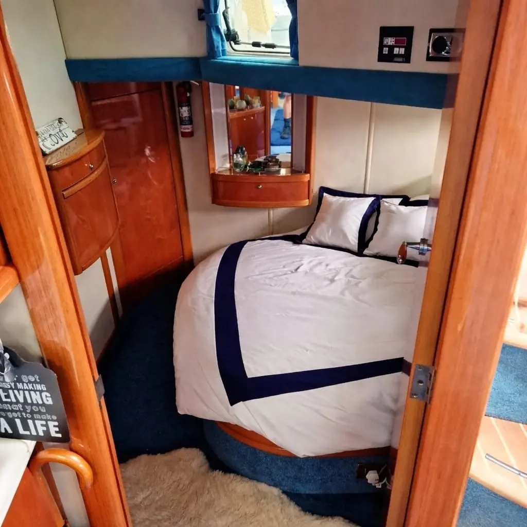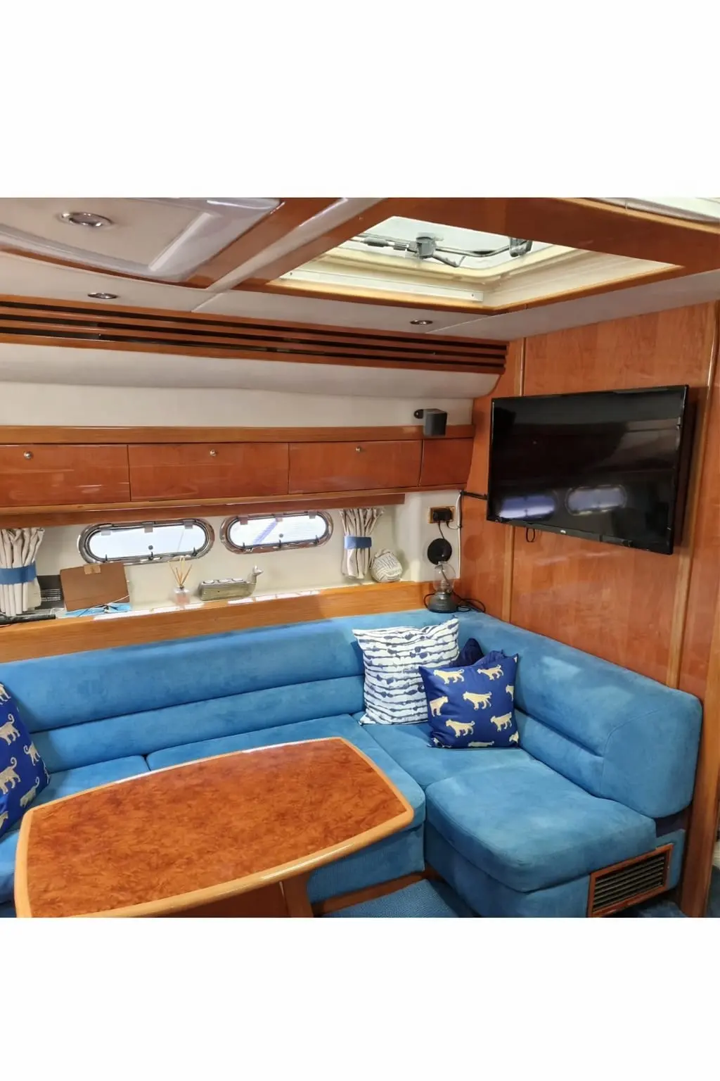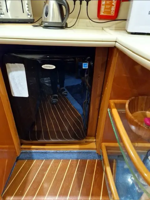 Designed with entertaining in mind, the spacious upper saloon features a fully equipped wet bar complete with electric BBQ grill, hot and cold sink, and fridge—perfect for hosting family and friends. The seating area, reupholstered in 2021, offers both comfort and style, with generous storage beneath.
